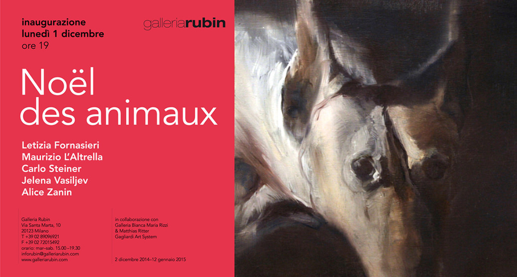 Aprono la coreografia le figure in carta impastata di colla, della giovanissima Alice Zanin (una giraffa che dondola dal soffitto , eleganti levrieri e dei ricci). Si prosegue con i quadri di Maurizio L'Altrella, altro giovanissimo che presenta immagini scure e misteriose, dipinte su tela, di belve e cani. Un analogo mistero pervade le cupe ma affascinanti sculture in alluminio di Jelena Vasiljev. I lupi sono ormai un'icona dell'artista serba che ha costruito decine di installazioni in gesso e altri materiali su questo tema. Si ritorna sull'andamento più sorridente e giocoso con i quadri policromi di cani e animali da cortile di Letizia Fornasieri. Infine, a rammentarci che il Natale è pur sempre una festività religiosa, chiudono la mostra i "pressati" di Carlo Steiner, cumuli di farfalle ricavate una per una da vere ostie, adoperando un'apposita pressa costruita dall'artista.