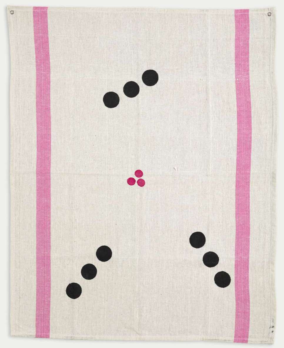 La mostra, comprende un progetto installativo realizzato site specific e una ricca selezione di opere appartenenti alle sue serie più rappresentative: le “croci”, i “torchon” e le “tarlatane” degli anni ’70, le Polaroid “casuali” degli anni ’80, fino alle nuove “tarlatane”e ai disegni su carta.