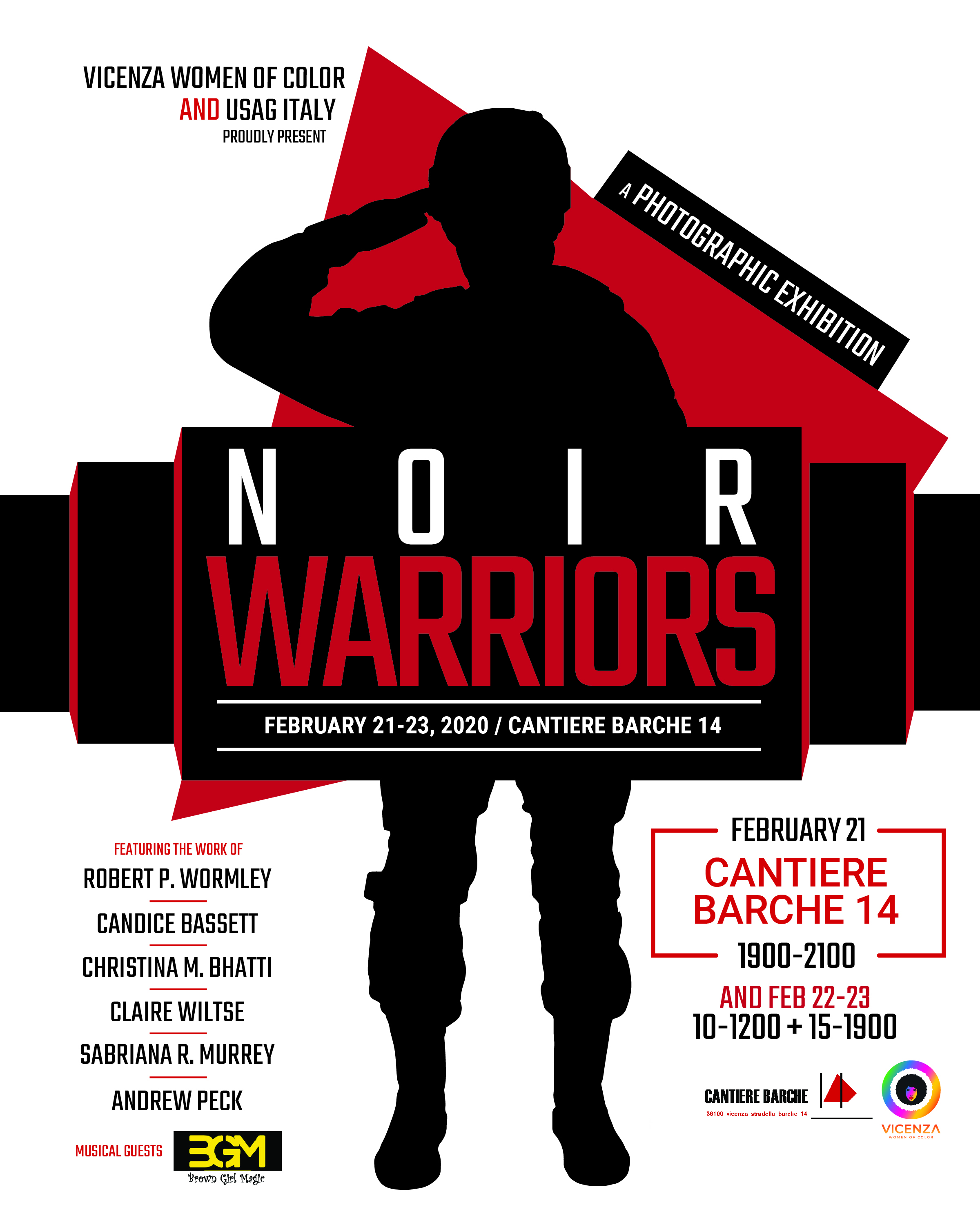 Sette artisti Americani sottolineano la peculiarità della comunità militare di Vicenza e del personale Afro-americano. La mostra è organizzata da Vicenza Women of Colour e co-sponsorizzato da US Army Garrison Italy. Evento celebrativo del Black History Month (mese della storia afroamericana).