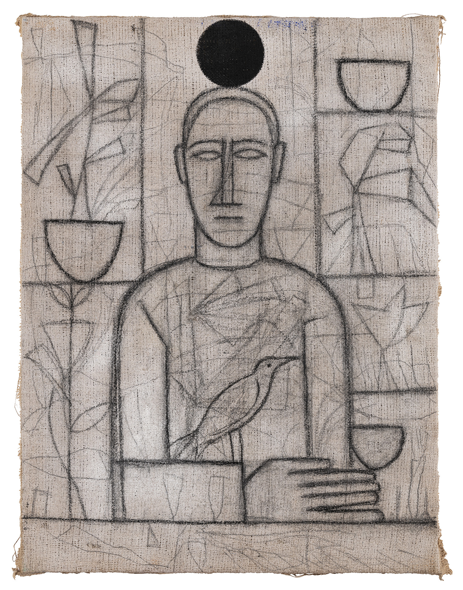 Dipingere per Mimmo Paladino vuol dire, dopo oltre cinquant’anni di ricerca, praticare un comportamento prima ancora che imbastire una specifica narrazione; la sua infatti è una pittura che si concentra sullo spazio, lo attraversa, lo penetra, lo trasforma; altre volte lo stravolge e poi lo ricompone con un ordine nuovo in cui tanti elementi affiancati e poi ridisegnati riescono a concepire un discorso che vive di combinazioni di linguaggi che l’artista ha sempre concepito come una pratica in grado di assorbire tutto: disegno, scultura, spazio, materia, metamorfosi vuoto, gesto, anche assenza come l’opera scelta dall’artista e dal curatore come immagine guida di questa mostra, quasi una sinopia, che ci ribadisce quanto per l’artista la pittura sia un fatto mentale.