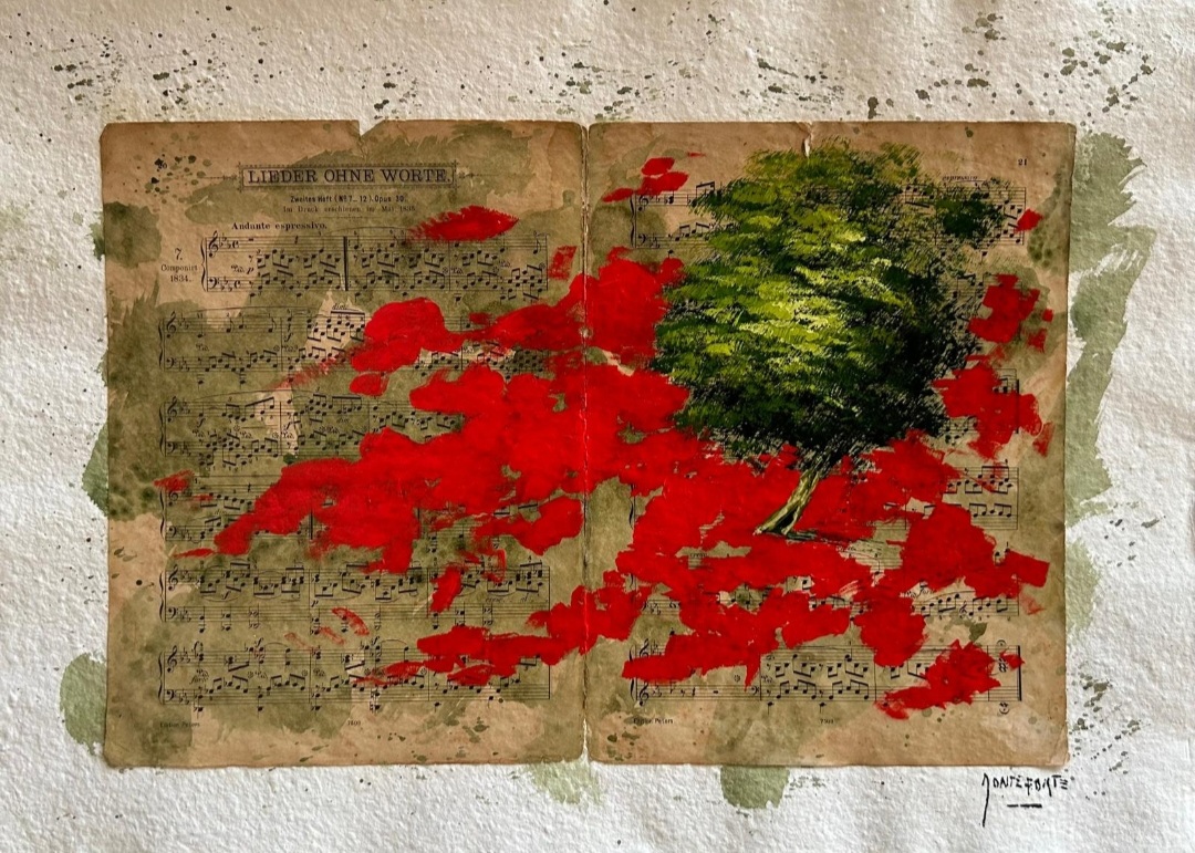 Giorgia Razzetta e gli spartiti dipinti di Domenico Monteforte “cerca nel dialogo tra colore e materia
