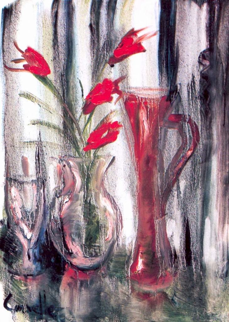 La pittrice, attiva a Roma e nella nostra città, presenta in questa rassegna più di una trentina di oli su tela, realizzati di recente, in cui palesa una nuova tematica che l’affascina da qualche anno a questa parte: quella dei vetri.