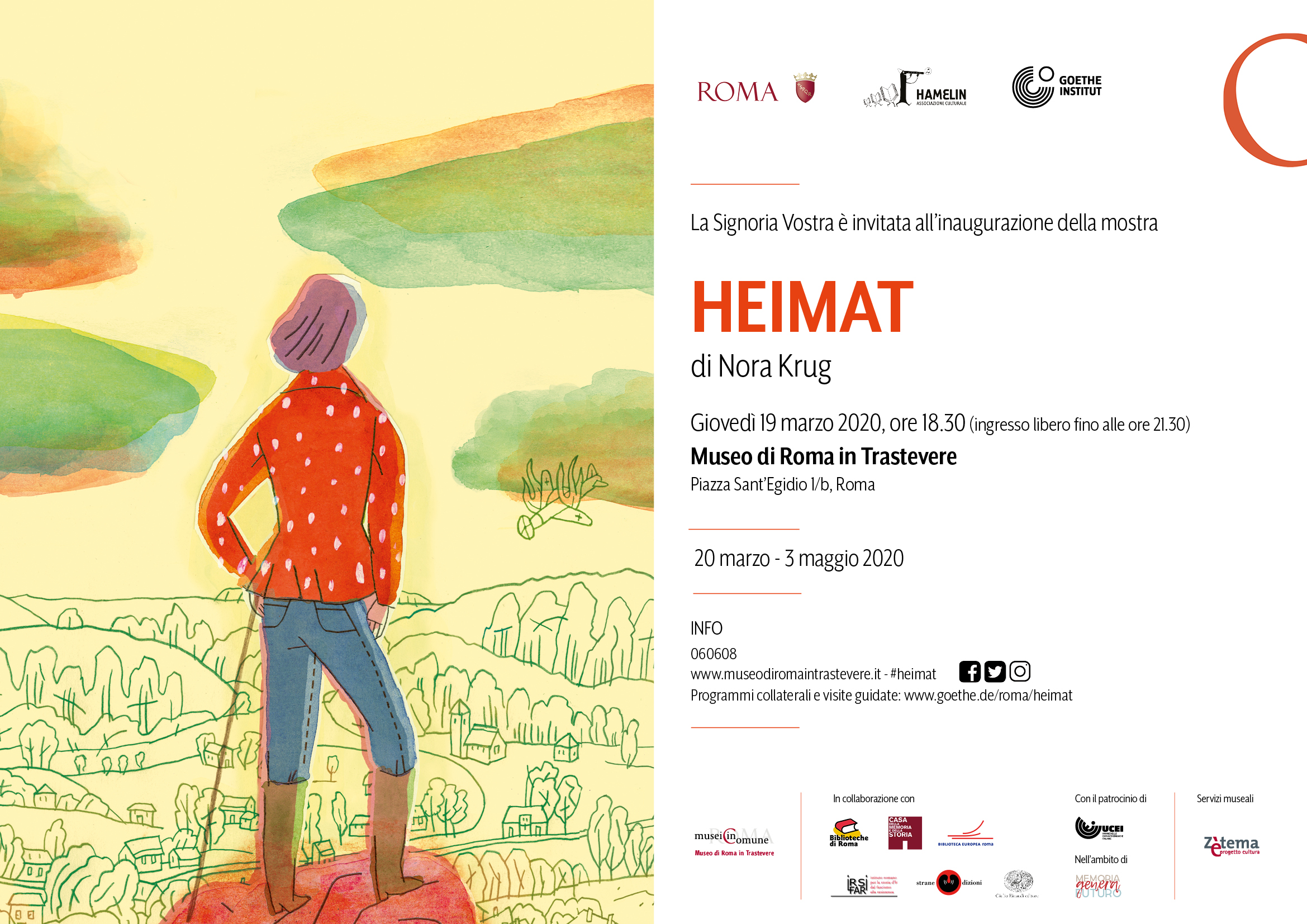 La mostra “HEIMAT” di Nora Krug è promossa da Roma Capitale, Assessorato alla Crescita culturale – Sovrintendenza Capitolina ai Beni Culturali, nasce da un progetto del Goethe-Institut con il patrocinio di UCEI - Unione delle comunità ebraiche italiane e in collaborazione con Casa della Memoria e della Storia a Roma, Biblioteche di Roma, Giulio Einaudi Editore.
