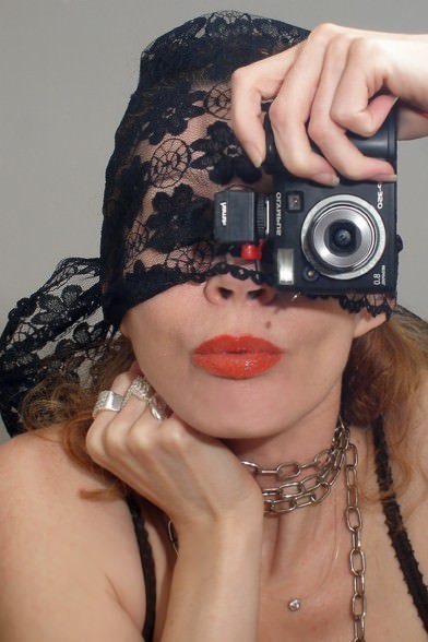 Assieme alla Ness non manca mai una seconda protagonista scenica: la macchina fotografica. Resta allo scoperto, sempre nelle mani scattanti dell’artista, a conferma di un chiaro gioco di specchi che disvela l’evidente in uno scenario senza supporti e comparse. La Ness conferma la sua solitudine ossessiva nel gesto dichiarato dello scatto autoreferenziale. La macchina digitale invade l’immagine come feticcio ulteriore, condizionando le stesse posture, gli sguardi, le tensioni muscolari. La solitudine apparente si trasforma nel mondo prismatico di un clic rivelatorio, espressione oggettuale di un’aderenza completa a quanto si sta compiendo in scena.