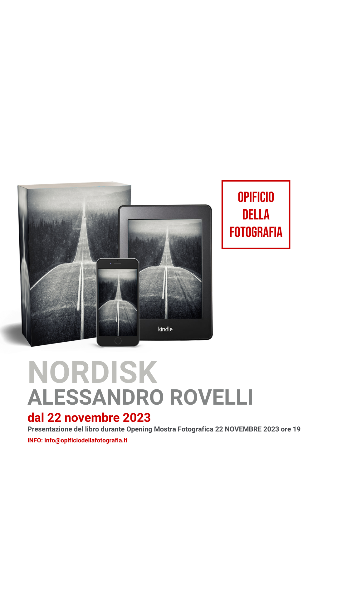 Il giorno dell'opening, mercoledì 22 novembre 2023, sarà disponibile per il pubblico il libro NORDISK, una monografia sul lavoro fotografico di Alessandro Rovelli incentrato sul grande Nord. 108 pagine di infiniti passi da percorrere a perdita d’occhio, circondati da una natura sempre differente e affascinante. 108 pagine di intensità, umori, variazioni di luce, particolarità dell'atmosfera. Un'immersione nella luce e nei silenzi di un ambiente che diventa paesaggio dell’anima, un paesaggio ideale quasi. Dove domina lui, volubile, maestoso, arioso, offuscato e luminoso, il cielo ... e noi ci incamminiamo per queste strade solitarie nel ghiaccio, con un volo di pensieri in testa.