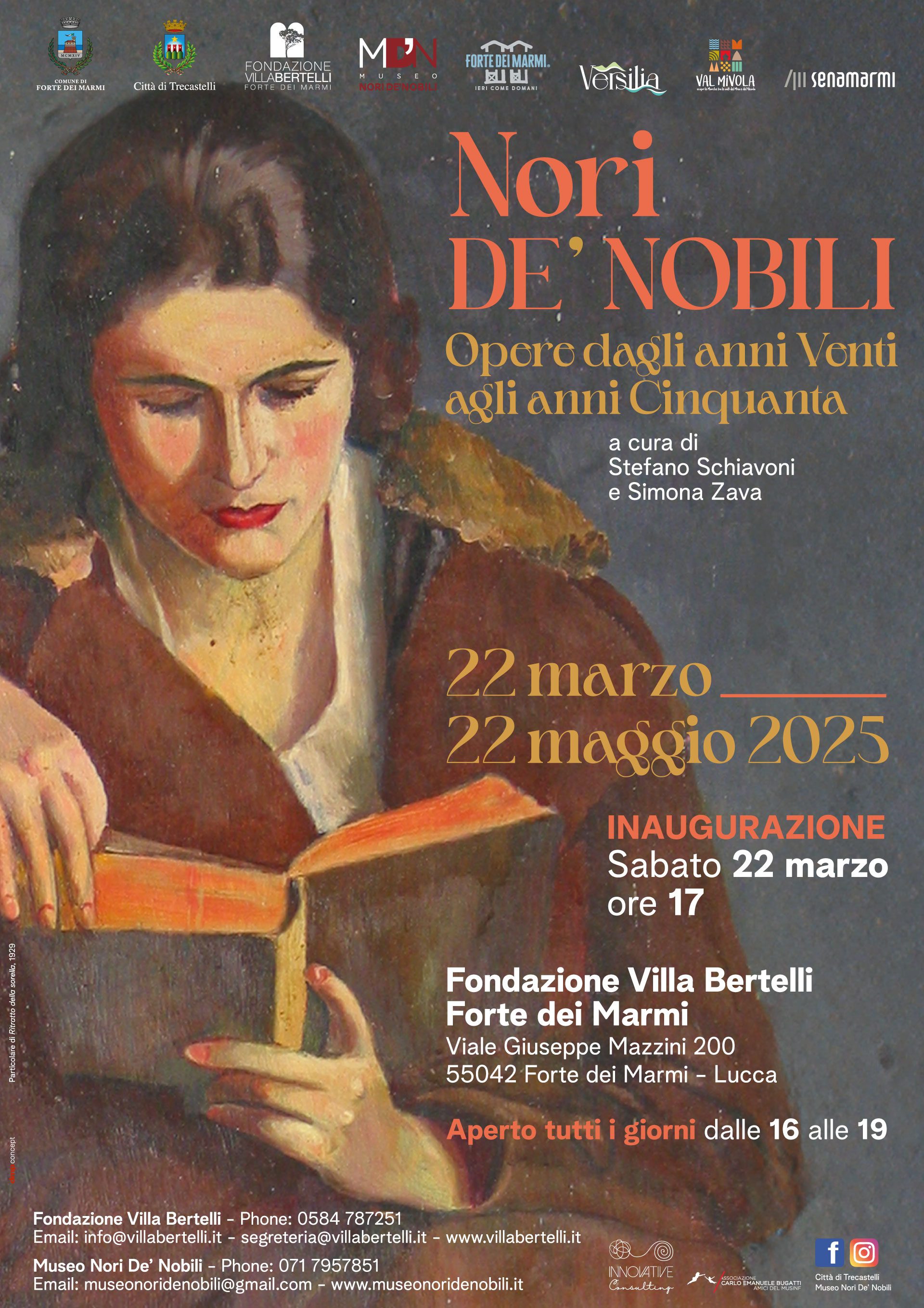 Sabato 22 marzo 2025, alle ore 17, sarà inaugurata a Villa Bertelli di Forte dei Marmi (Lu) la mostra NORI DE' NOBILI - Opere dagli anni Venti agli anni Cinquanta, a cura di Stefano Schiavoni e Simona Zava.