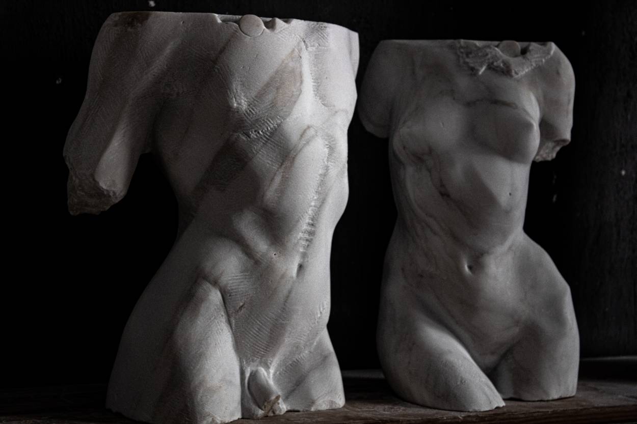 Elias Naman, scultore, lavora invece sulla fisicità della materia, esplorando il rapporto tra forma e gesto, tra peso e leggerezza. Le sue opere si configurano come presenze intense, capaci di abitare lo spazio con forza silenziosa.