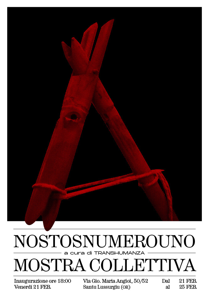 Venerdì 21 febbraio a Santu Lussurgiu presso l’abitazione di Via Gio. Maria Angioi 50/52 verrà inaugurata la mostra collettiva “Nostos Numerouno” a cura di Transhumanza, collettivo artistico e curatoriale formato da Ambra Iride Sechi, Matteo Orani, Dario Sanna e Alessandra Sarritzu.