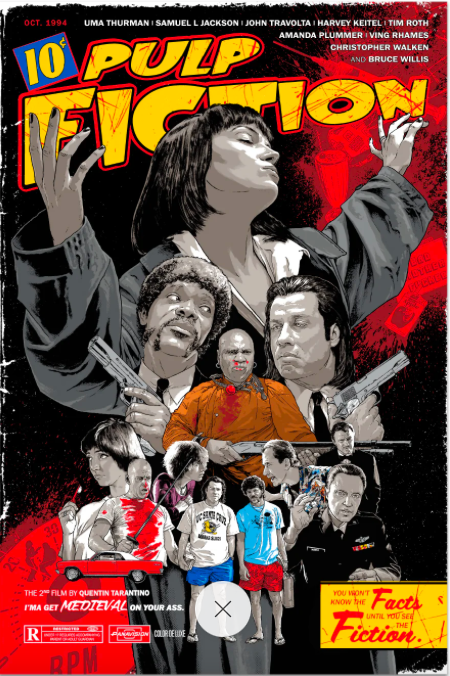 Alcune opere si presentano come copertine alternative di album in vinile, con taglio quadrato e lettering da disco cult. Un esempio su tutti, l’illustratore americano Aaron Lea, che espone dieci opere ispirate a tre capolavori di Quentin Tarantino (Pulp Fiction, Jackie Brown e C’era una volta a… Hollywood), ciascuna incentrata su un protagonista e una canzone simbolo del film. C’è poi Stand by Me, con il disco che esce letteralmente dalla sua custodia grafica, o Quei bravi ragazzi reinterpretato da Benedict Woodhead: una geniale copertina che mostra tre pistole, i cui manici svelano il profilo dei tre protagonisti.