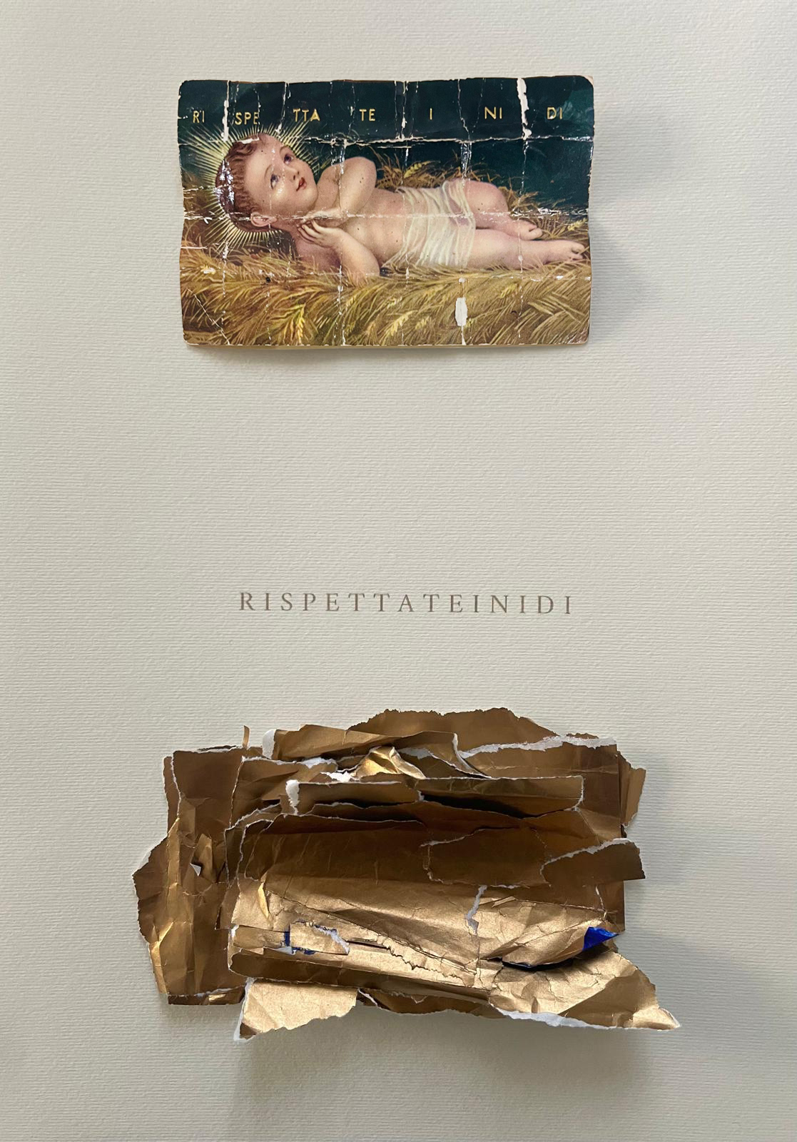 Così il duo Giorgi&Perfetti, attraverso media diversi: video, un’installazione, un trittico, composizioni in tecnica mista e un libro d’artista, sovrappone all’immagine di Gesù bambino numeri, strumenti di dominio e di controllo, il cuore dell’oblio dell’essere. «La nostra epoca riduce tutto a calcolo e funzionalità», osserva il filosofo Martin Heidegger.