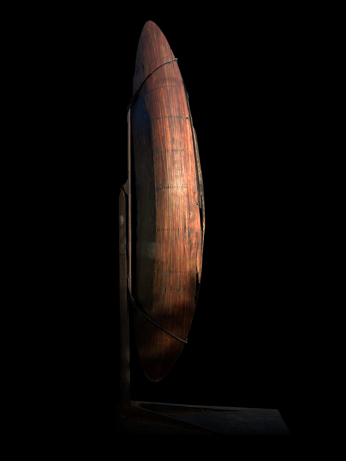 La grande istallazione “Seme” nasce da legname recuperato da un’imbarcazione, plasmato con ferro e resina per diventare un enorme seme.