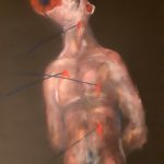 Morte e resurrezione, maschera e iconologie confessionali, si ricreano passando dal loro svuotamento segnico. In questo abbandono della rappresentazione e figurazione, emergono grumi, macerie materiche, coaguli disposti per arcane adorazioni. Nella loro fissità lo sciamano-artista cerca eternità e bellezza. Sulla sabbia lascia un segno l'uomo che troppo ha creduto in ciò che è destinato a essere fantasma, immagine precipitata negli abissi di un’identità dissolta.