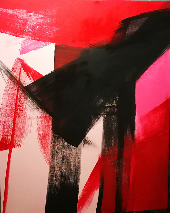 Alessandra Bisi si presenta con due opere sorprendenti. Una gestualità che invade l’osservatore, salta addosso al pubblico e lo zittisce per la grandezza e la maestria di un mano abile, rapida e invadente. Una mano matura si muove sulla tela in cui c’è solo da tacere e stare a guardare poiché c’è uno studio attento e sapiente ed una grandezza abile che riesce solo ad imprimere quei solchi pastosi e a lasciare che ogni sensazione sia libera davanti a cotanta grandezza.