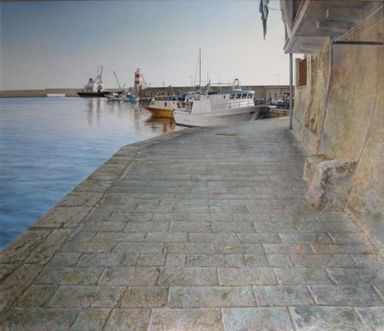 …ma ecco che un groviglio di reti, le funi delle barche, un selciato di banchina, scorci di auto, scatoloni abbandonati, focalizzano l’attenzione. L’oggetto inanimato, in piena autonomia di valenza estetica, si fa simbolo e testimone della riflessione dell’artista.