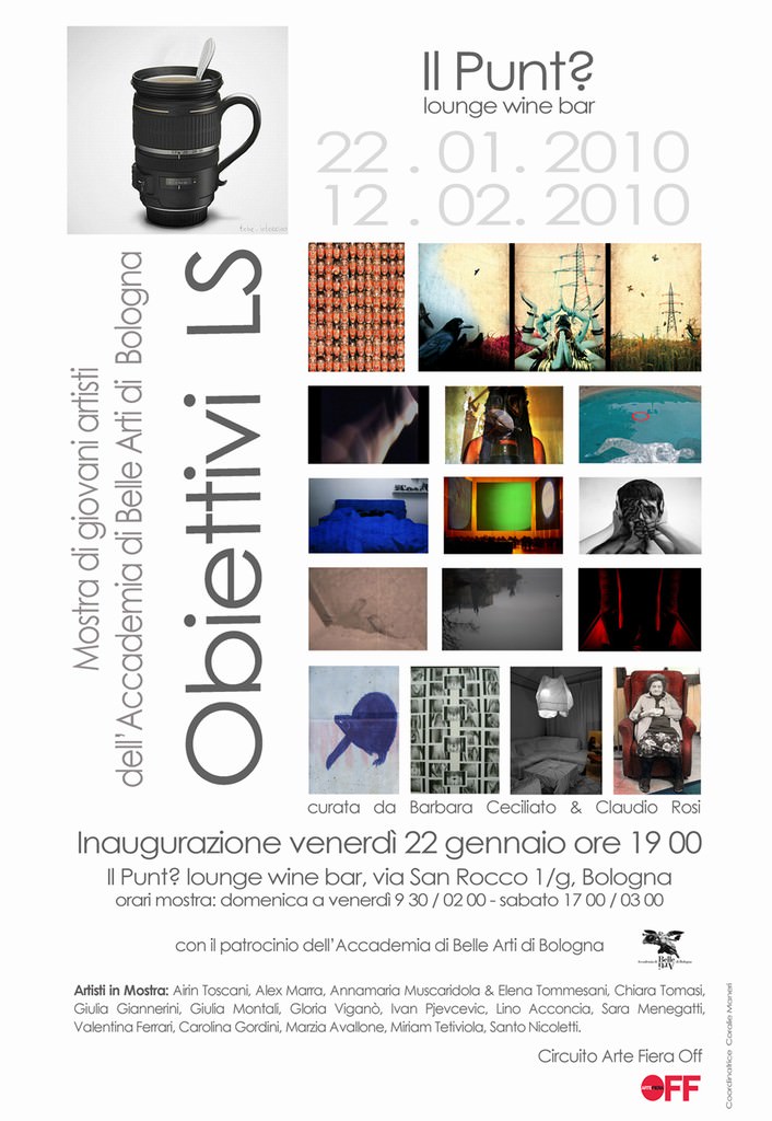 Barbara Ceciliato e Claudio Rosi hanno collaborato per la cura, la scelta dei lavori e l’allestimento della mostra che Coralie Maneri ha organizzato negli “alternativi spazi” di “Il Punt?”, Lounge Wine bar di via S.Rocco a Bologna.