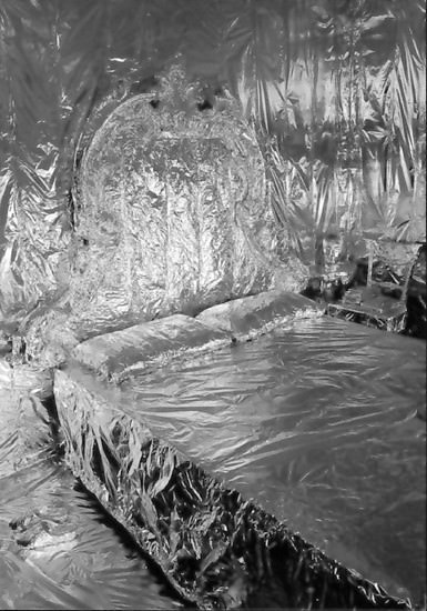 Attraverso l'estensione illogica di centinaia di metri di alluminio ho spogliato la casa dai suoi orpelli, occultando i suoi segreti ho sottolineato i suoi spazi spersonalizzandola in un monocromo dove tutto è annullato da una superficie specchiante: conservare e proteggere ma anche intasare lo spazio di una magica sacralità.