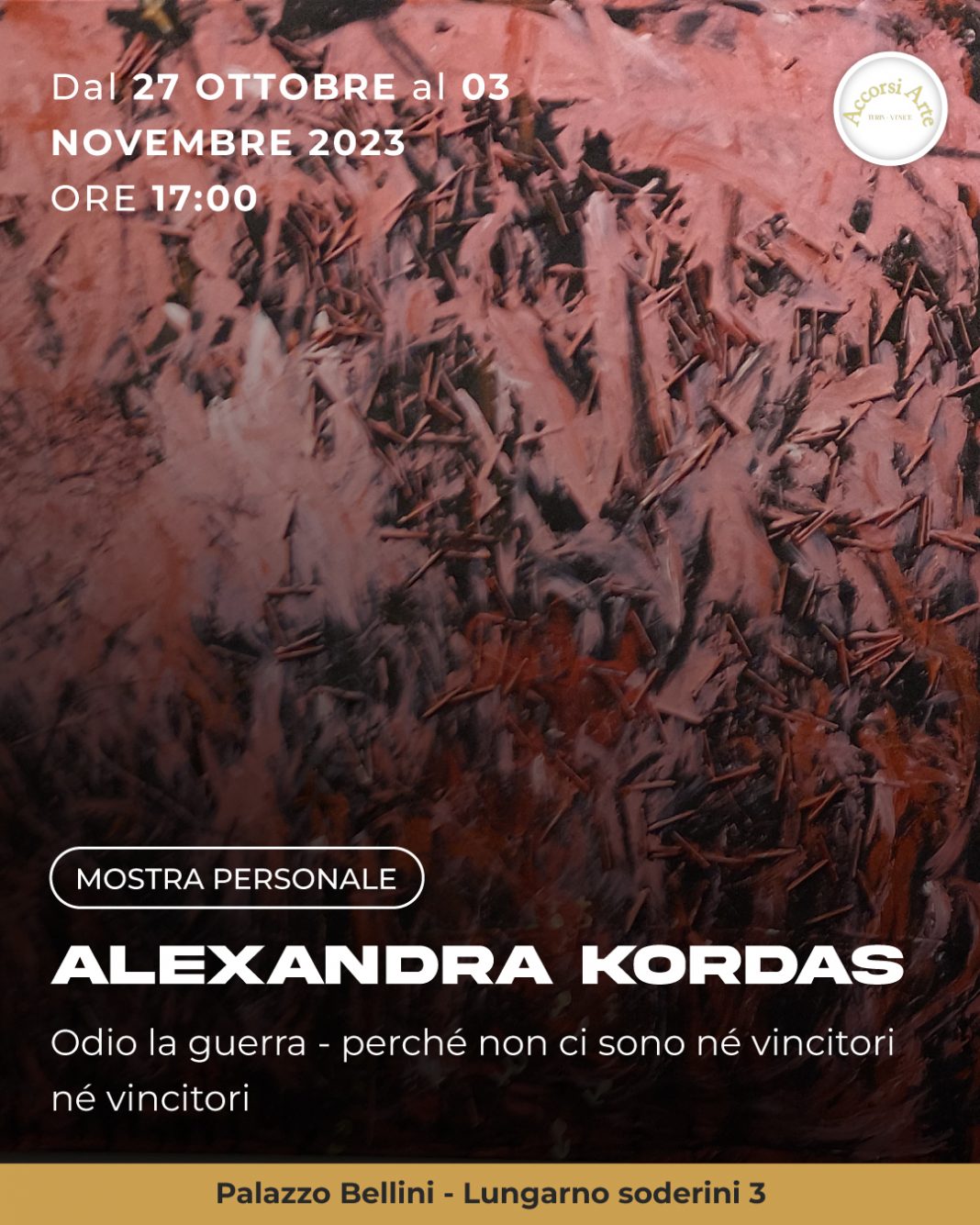 Mostra Personale dell’Artista Alexandra Kordas che attraverso la sua visione artistica manifesta l’assurdità della guerra oggi come ieri.