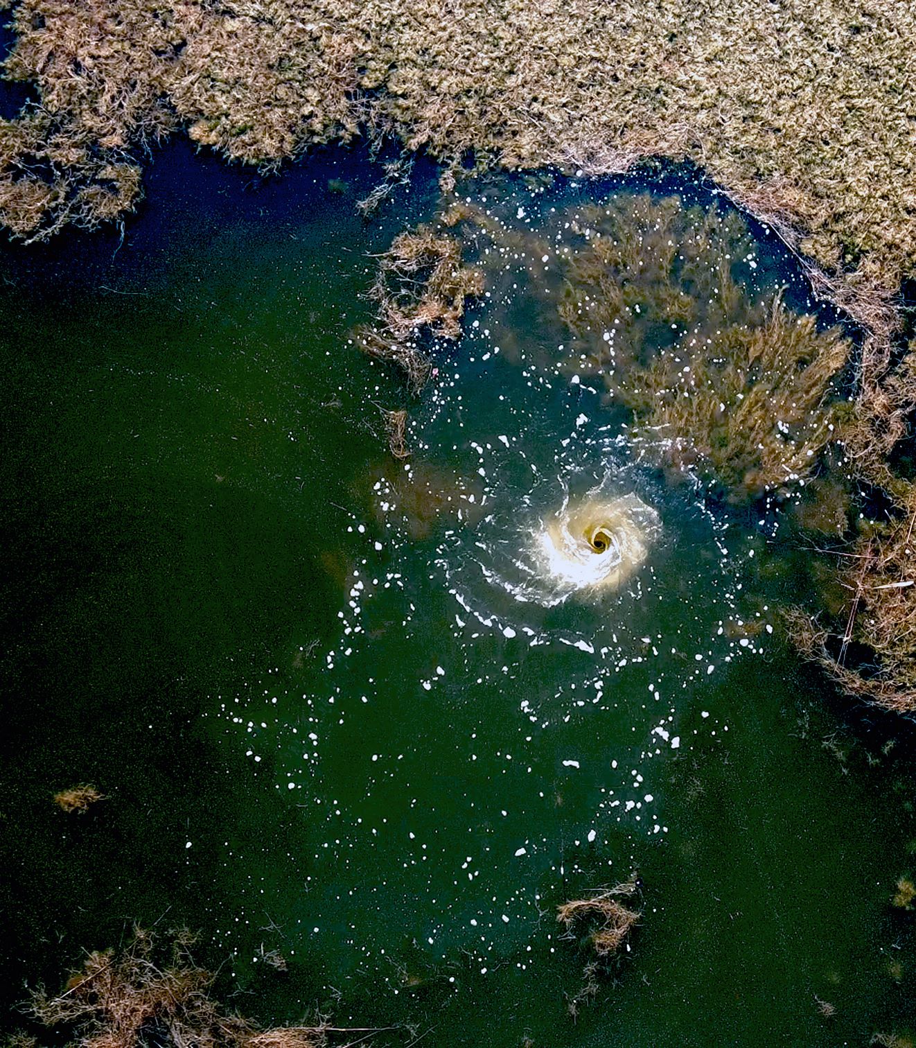 Presentato in anteprima l’8 giugno in occasione della Giornata Mondiale degli Oceani, “Il Grande Orecchio” è forse l’opera più forte a detta degli stessi artisti di Officinadïdue. Si tratta di un’opera sonora e fruibile solo due volte al giorno: alle ore 10.00 e 19.00. Un vortice che sgorga da uno specchio d’acqua nell’isola di Albarella, accompagnato da un sound che mixa più di 50 voci di cetacei: un invito a mettersi in ascolto del fragile ecosistema marino. “L’orecchio ha una simbologia antica associato alla saggezza di chi sa ascoltare” raccontano Bonaventura e Mainardi. “Serve predisporsi e, tramite la spirale - movimento archetipo dell’acqua- ascoltare la voce dell’ecosistema marino. Sono due mondi che comunicano fra loro. Il vortice è un mezzo per auscultare il fondo del mare e mettere in dialogo il sopra e il sotto, noi e loro.”