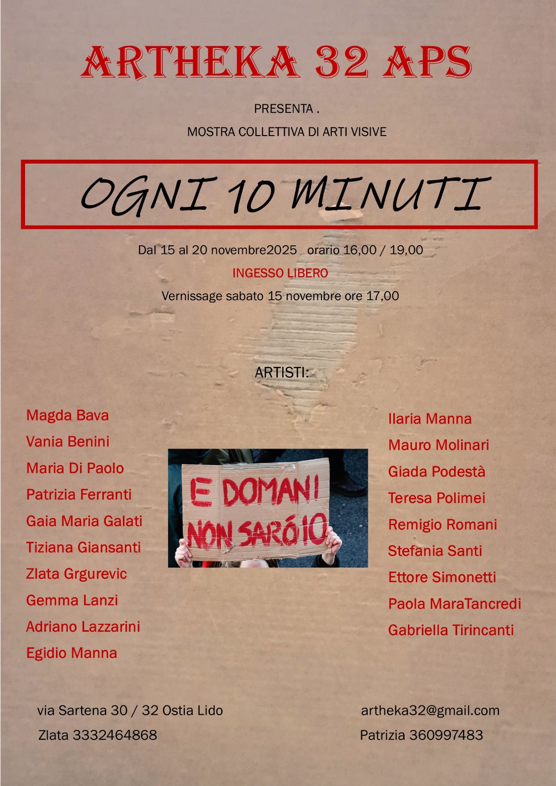 In occasione della giornata internazionale contro la violenza sulle donne Galleria Artheka32 organizza una mostra di arti visive.Ogni dieci minuti nel mondo una donna muore per mano di un uomo,marito, compagno,fidanzato.Educare all’affettività sana e rispetto della persona per fermare questa strage.