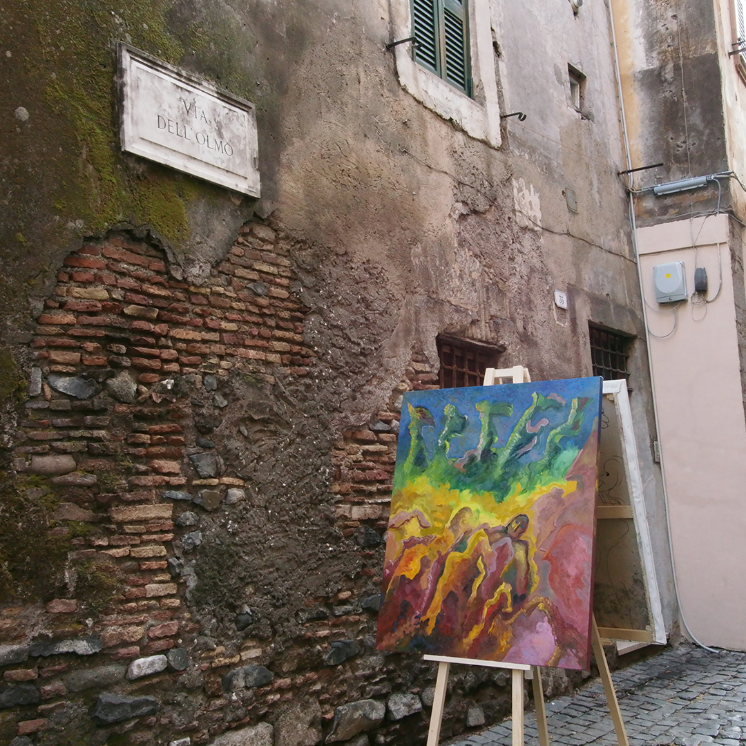 Esposizione collettiva diffusa su strada di pittura contemporanea nella storica via commerciale dell’Olmo di Frascati (Roma), a cura della Galleria d’Arte ed Associazione Culturale “Agarte – Fucina delle Arti”.