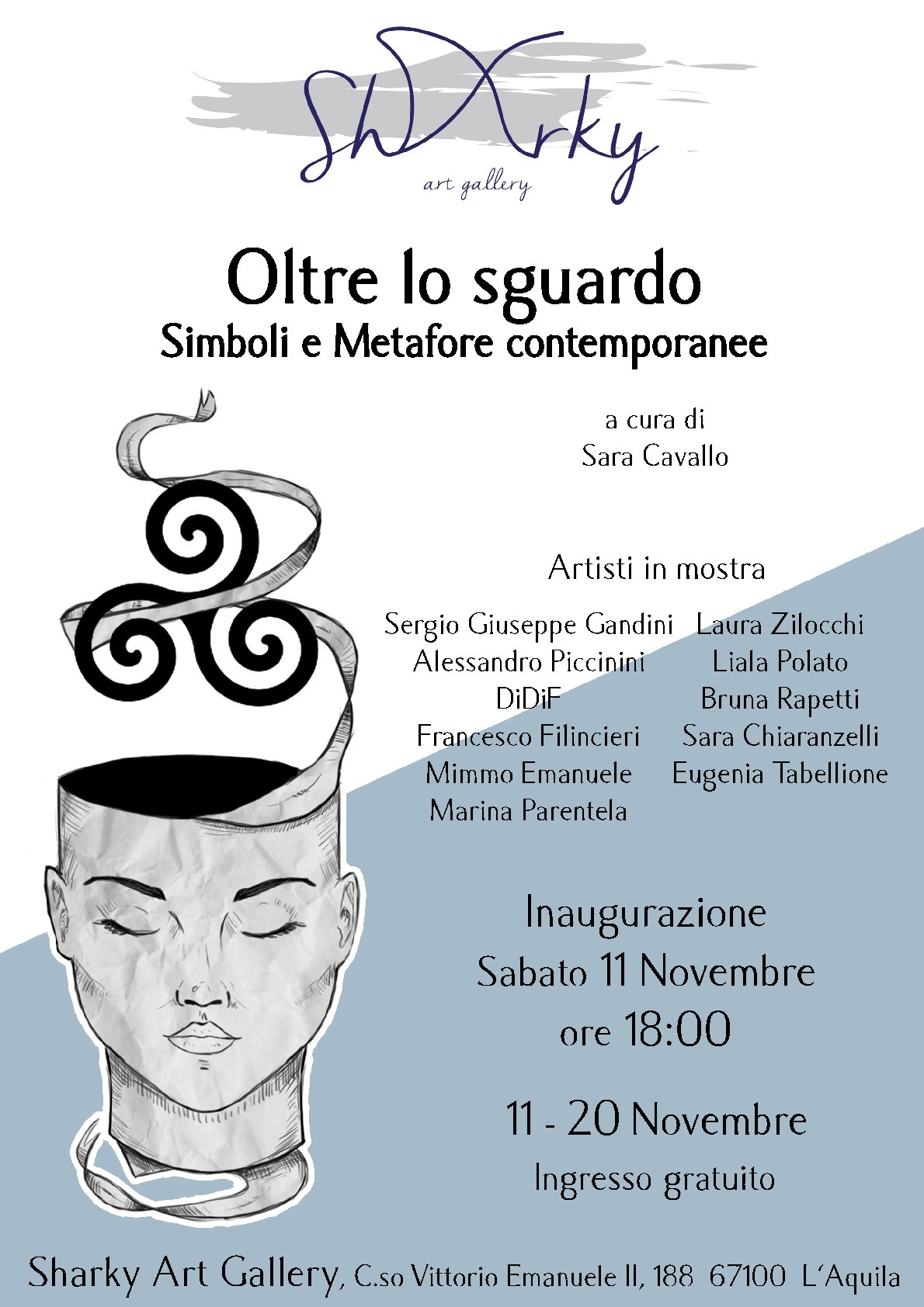 Sabato 11 novembre alle ore 18:00, Sharky Art Gallery è lieta di presentare ''Oltre lo sguardo – simboli e metafore contemporanee'' a cura di Sara Cavallo; una mostra collettiva, in cui gli artisti interpretano simbolicamente la realtà.