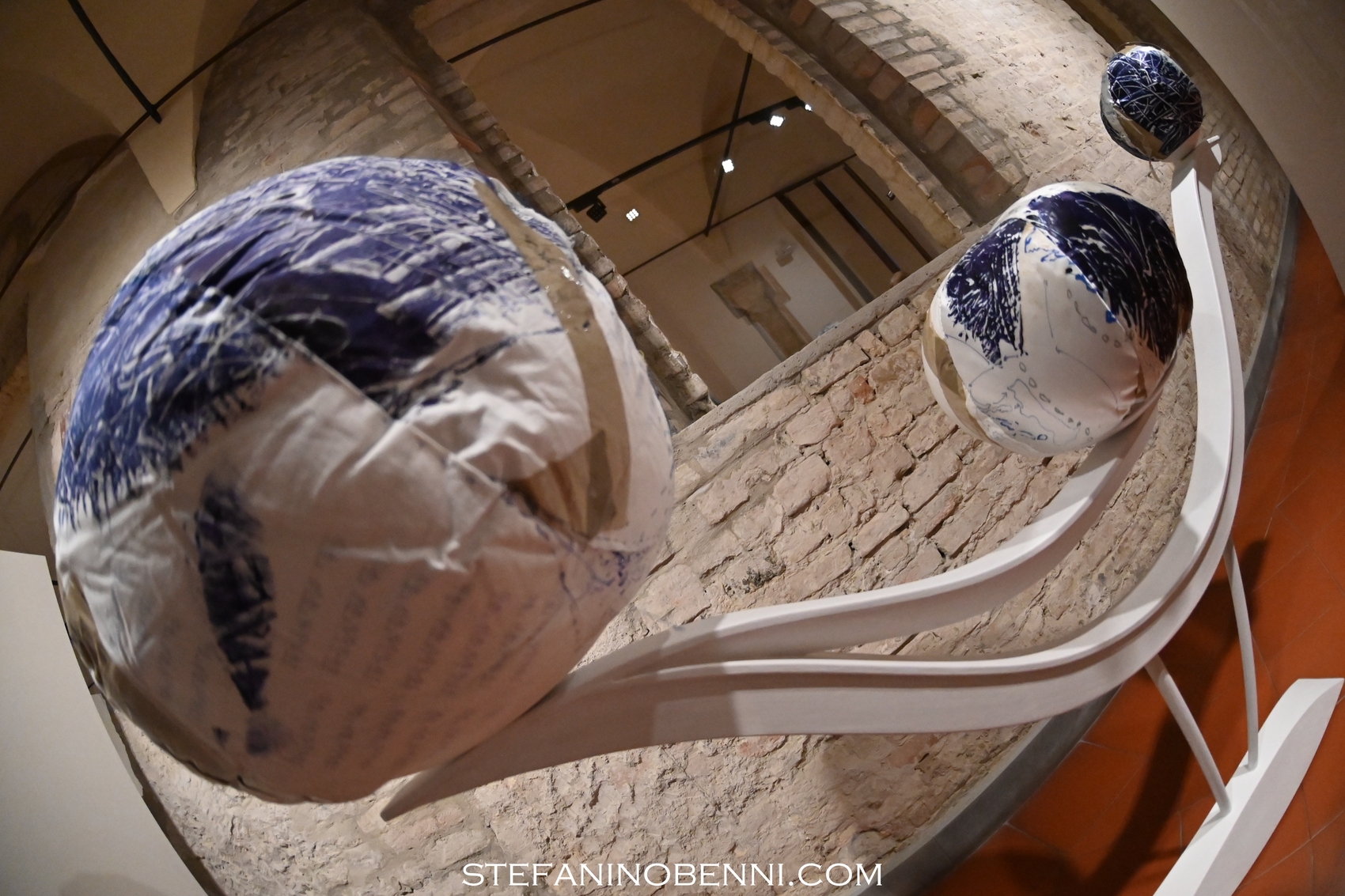 Alejandrina ci porterà a scoprire varie fasi del suo lavoro, partendo da opere che per esecuzione sono bidimensionali, le “mappe celesti”, che in realtà hanno in seno vari piani e livelli di lettura spazio-temporale, si tratta di stampe monotipo realizzate con la tecnica del BalloonHandWritting Blue