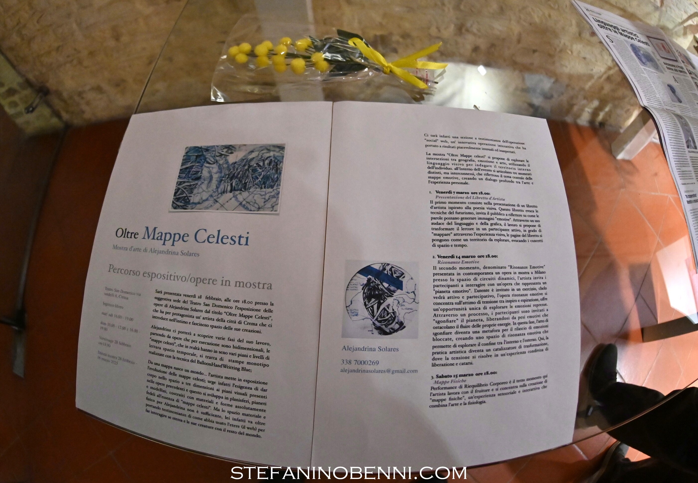 Sarà presentata l’esposizione delle opere di Alejandrina Solares dal titolo “Oltre Mappe Celesti”, che ha per protagonista un’artista della città di Crema che ci introduce nell’intimo e fascinoso spazio delle sue creazioni.