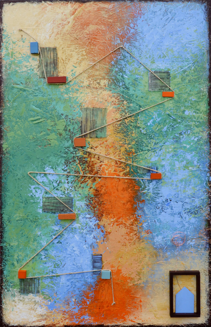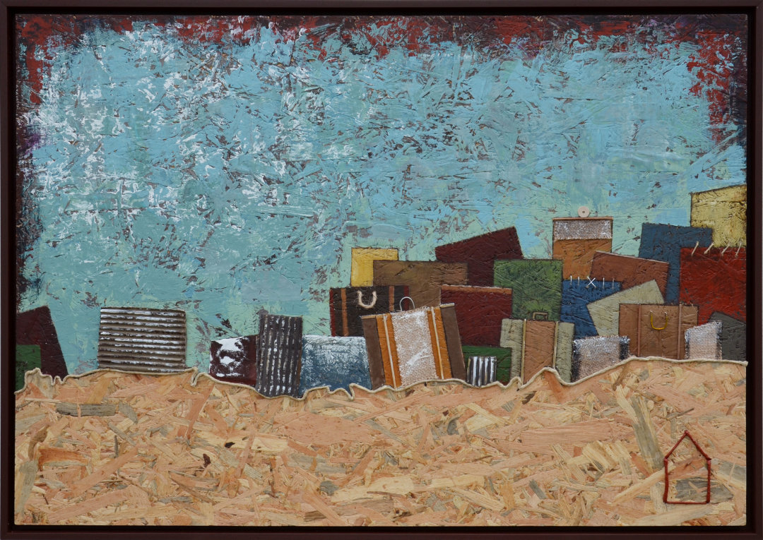 OLTRE – Un Viaggio di Metamorfosi’ di Erika De Benedetto esplora casa, migrazione e confini, trasformandoli in archetipi universali. Con materiali grezzi come corde, metalli e acrilici su OSB, l’artista racconta tensioni tra passato e futuro, identità e trasformazione.