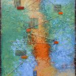 Il lavoro di Erika De Benedetto approfondisce il linguaggio della materia e dell’identità utilizzando materiali grezzi e industriali come corde, metalli, cocci di terracotta, cartone, foglia d’oro e acrilici su OSB. Questi elementi si trasformano in opere evocative, capaci di raccontare tensioni tra passato e futuro, distruzione e rinascita.