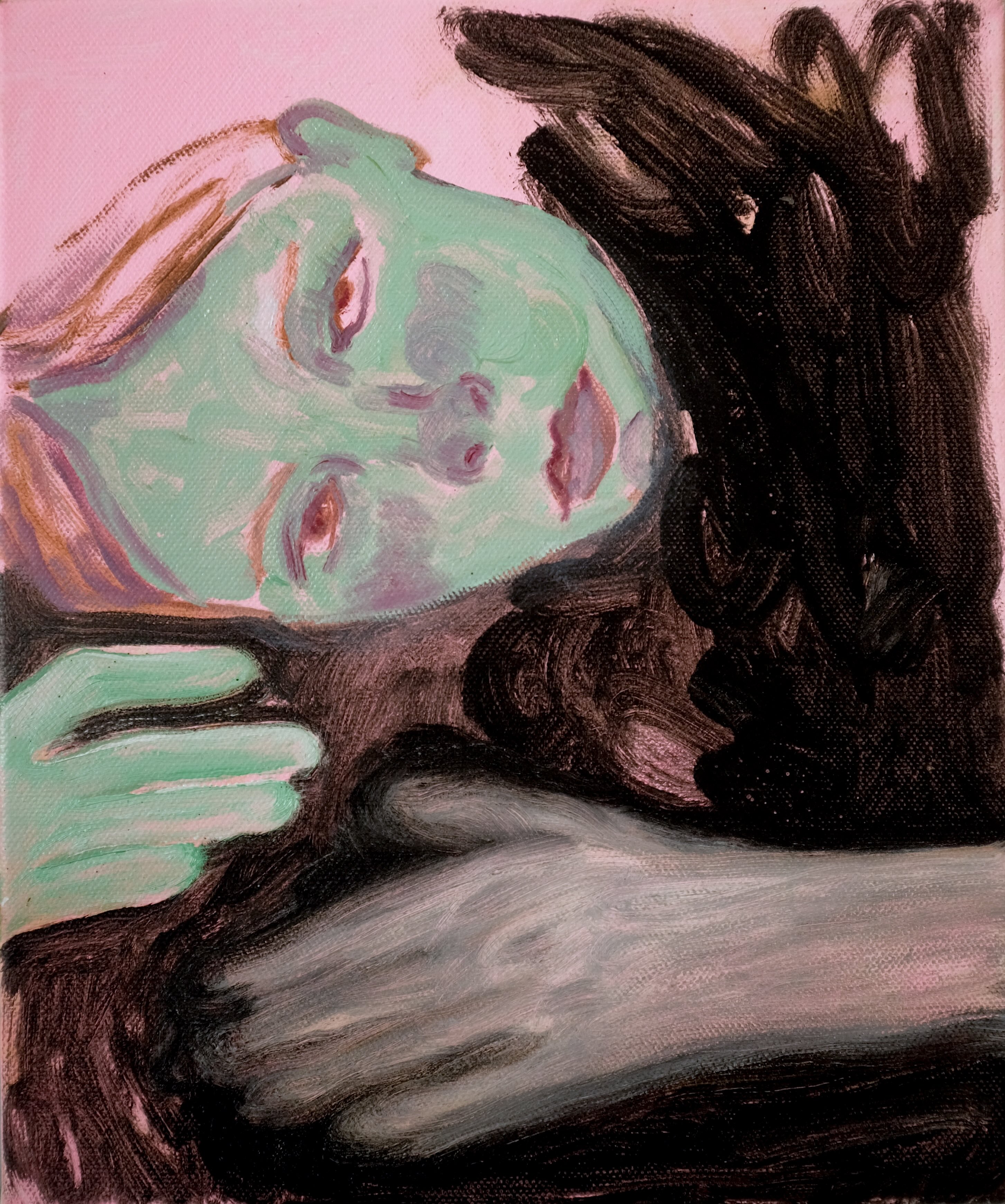 The results are large-scale brushy canvases that tell stories rooted in dark fantasies of isolation and transformation of the self, and intimate smaller works — sensual close-ups of desire and lost innocence.