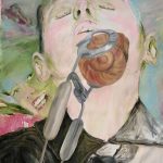 In her dynamic, expressionist works, Olya Avstreyh explores the drama of modern womanhood. Often void of an obvious narrative, her enigmatic paintings tell the story of a human being lost in confusion. Whether it’s acrylic on canvas or oil on paper, she, paradoxically, uses mostly vibrant hues to create her dark fantasies, which are both ambiguous and bewitching.