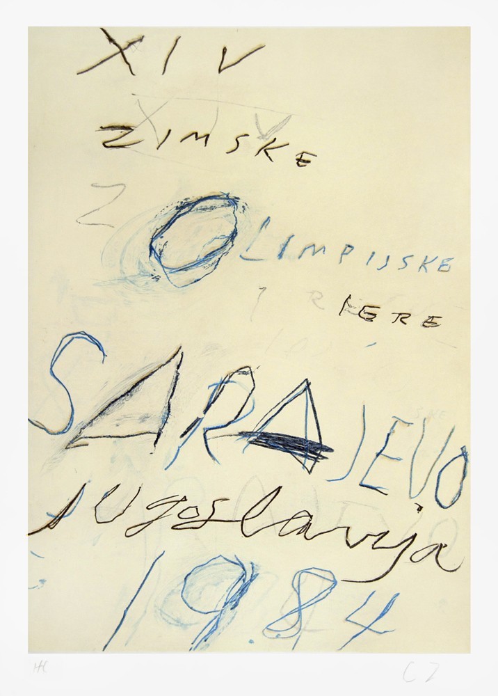 In omaggio al grande artista Cy Twombly, recentemente scomparso, la Galleria Marino dall’8 al 30 luglio 2011 espone un’opera di Cy Twombly, che l’artista ha realizzato su commissione del dott. Giuseppe Marino per le Olimpiadi invernali di Sarajevo del 1984. Si tratta di un’acquaforte acquatinta dal titolo “XIV Olimpiadi Invernali – Sarajevo 1984”, datata 1983.