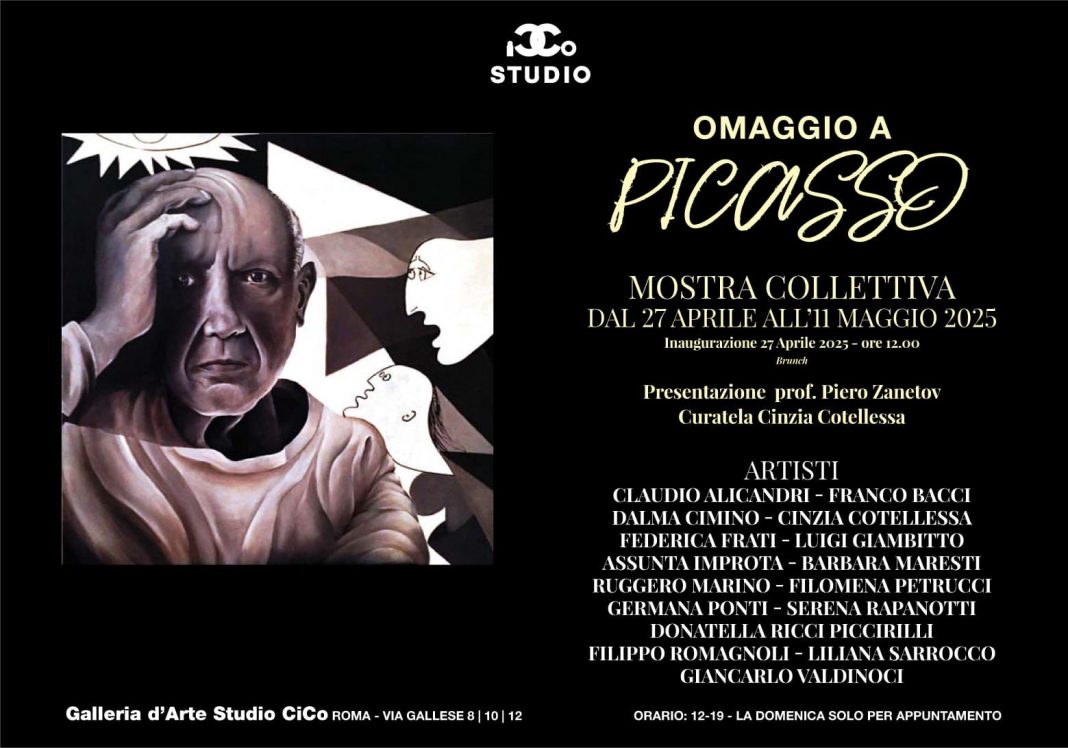 La GalleriaStudioCiCo è lieta di annunciare l’inaugurazione della mostra collettiva internazionale OMAGGIO A PICASSO, che si terrà sabato 27 aprile alle ore 12.00 presso i suoi spazi in via Gallese 8, Roma.