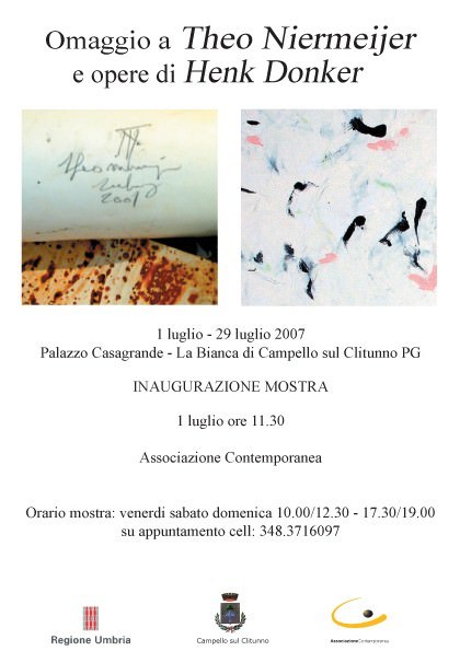 La mostra è un omaggio, anche attraverso l’opera di Henk Donker, a Theo Niermeijer, uno dei più interessanti artisti contemporanei olandesi, recentemente scomparso