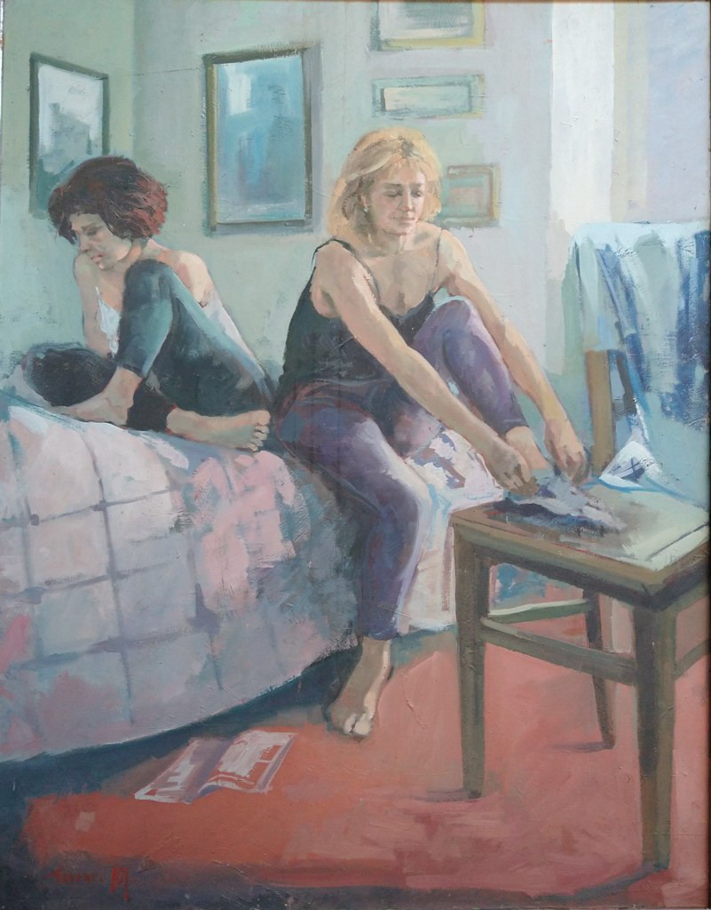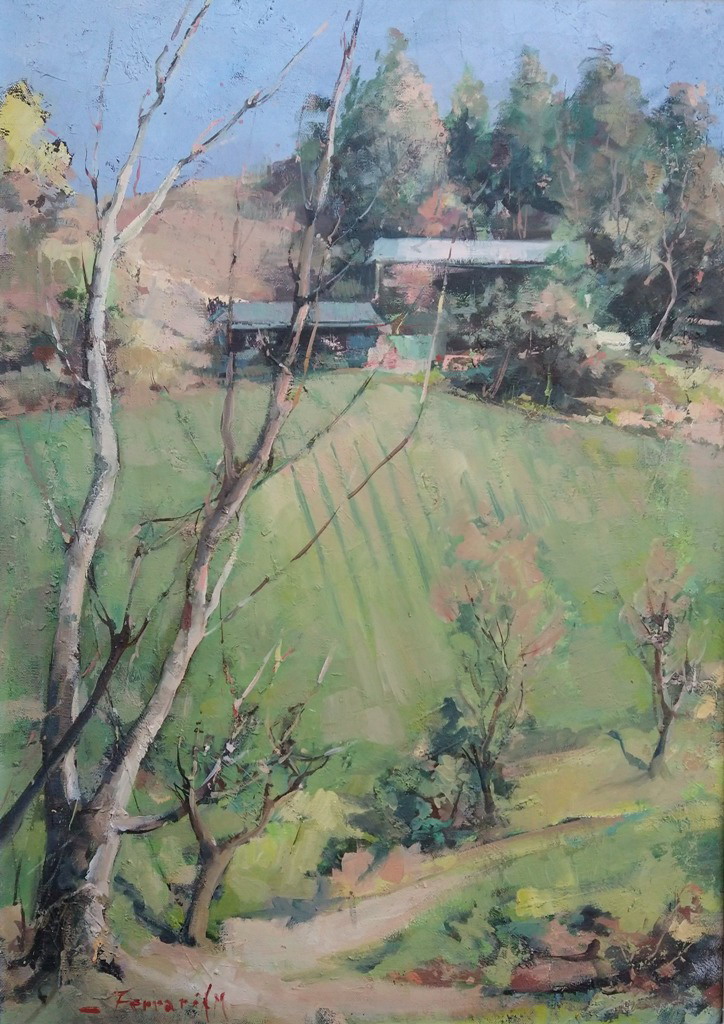 Lo stesso vale per la pittura, forte e vigorosa, libera e potente, scultorea quasi, nel suo prorompente vigore. Così le due forme artistiche, pittura e scultura, finiscono per fondersi e contaminarsi fino a formare un “unicum”, una cosa sola, dove la materia, intesa proprio come spessore, volume e tridimensionalità, è protagonista indiscussa di ogni sua creazione. Allora i suoi stupendi paesaggi, riferiti per lo più alla vallate piacentine, si vestono di una forza prorompente, il colore si fa materia densa e corposa, traccia solchi e avvallamenti, a volte diventa opaco e rugoso come la terra, altre volte, invece, acquista la leggerezza dell'aria e delle nuvole. Pittura che denota forte personalità, sicurezza d'esecuzione e taglio compositivo moderno e contemporaneo. E lo stesso vale anche quando l'artista affronta le tematiche legate alla “figura umana”. I suoi personaggi, infatti, rivelano sempre grande senso plastico, morbidezza e forza espressiva unite, molto spesso, ad una sottile e velata malinconia che li avvolge di una sentita carica poetica.