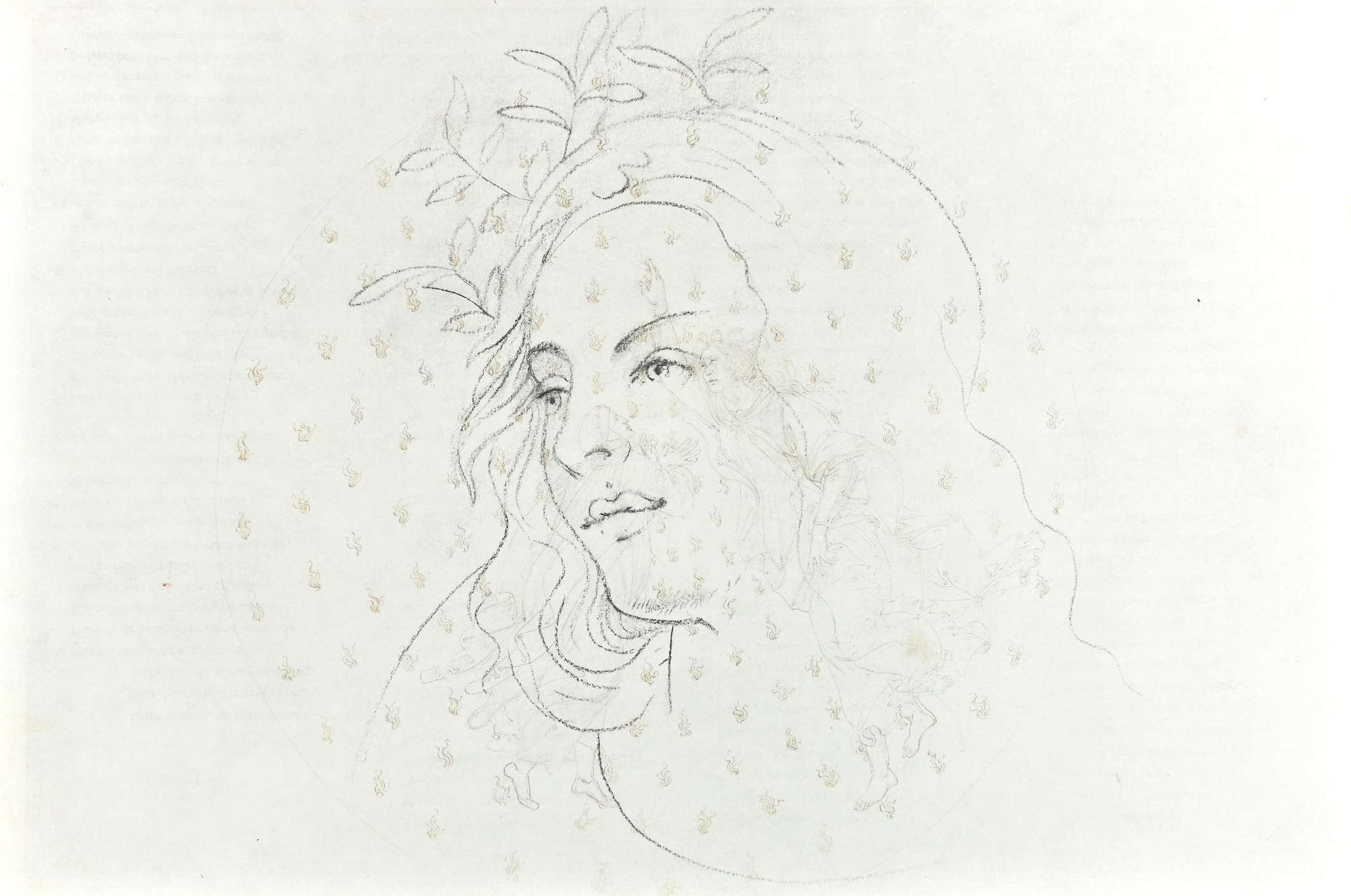 Compaiono poi una decina di raffinati esempi della serie Botticelliana (2001), dalle opere più famose di Sandro Botticelli, come La Venere, La Primavera, il Ritratto di giovane donna, conservato allo Städel Museum di Francoforte... Sulle carte delicate, Galliani riprende a carboncino i volti delle fanciulle, alcuni dettagli anatomici e le loro movenze. Lo sfondo è impreziosito da ripetuti sigilli e liriche ed evanescenti scene sottostanti, serigrafie dalle rappresentazioni di Dante e Beatrice del Botticelli. Disegni nel disegno, per un artista che ha fatto della ricerca grafica la propria missione, riuscendo a nobilitare e attualizzare una pratica tanto antica. Botticelliana è tratta da un quaderno di viaggio realizzato di passaggio verso il Salento, dove il maestro ha un atelier e trascorre alcuni periodi dell'anno.