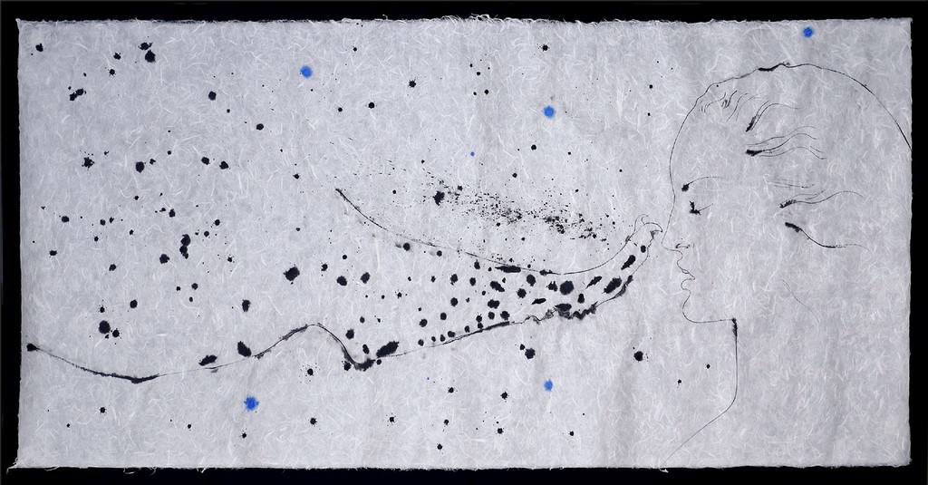 «Tra Oriente e Occidente – spiega l’artista – ho ritrovato quel filo rosso che da tempo attraversava i miei disegni. Tra Oriente e Occidente ho macchiato, tracciato, colmato e asciugato i calamai del tempo. Un tempo breve e lungo in cui la carta di seta e di riso accoglie il segno, per poi diluirlo nella trasparenza dell’acqua. Le filigrane si sciolgono e mutano sotto la necessità del soggetto. Un tempo breve e lungo ha attraversato i miei viaggi in Cina, in Corea, in India, in Vietnam, riportandomi sempre a casa, nel mio atelier, là dove la nebbia annulla e modifica i piani prospettici e dove la realtà si confonde con il sogno. Questi disegni sono l’eredità di quei viaggi, dove le carte arrotolate si sono riaperte sul tavolo di pioppo del mio studio, distante migliaia di chilometri dagli immensi baobab o dagli agarwood profumati d’Oriente. La carta la puoi portare con te, peso leggero e indispensabile supporto per la conoscenza della storia dell’arte e delle sue distanti e imprevedibili geografie, connesse fra loro dagli artisti mille anni prima dell’avvento di internet. La carta è come la nostra pelle: muta nel tempo, ingiallisce macchiandosi nel sole. Le cicatrici, i tattoo, i tagli, le cancellature, i pentimenti, le parole, le note, gli occhi, le labbra, i corpi, le stelle, i pianeti, le astrazioni, la matematica, i numeri infiniti. E tanto ancora è la carta dei miei disegni».