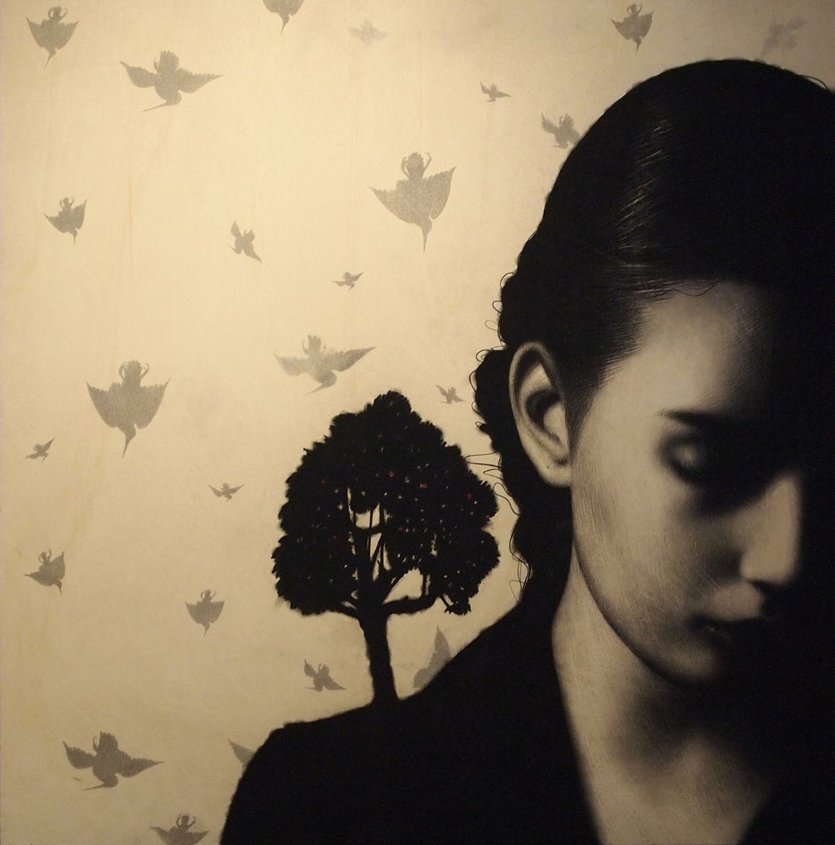 È allora un percorso di forte impatto ed emozione che ci parla dei grandi temi dell’uomo: la natura, la vita, l’arte, la pandemia, la morte, la santità, giocato in particolare sul bianco candido della tavola di pioppo e il nero scintillante e misterioso della grafite.