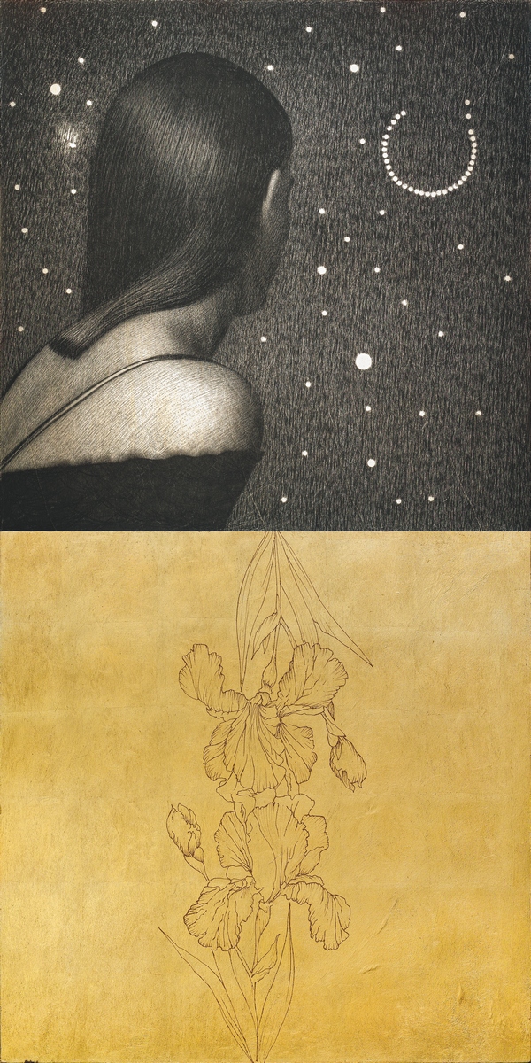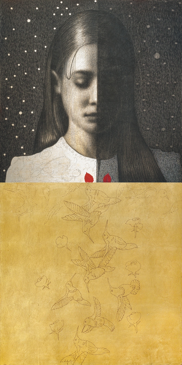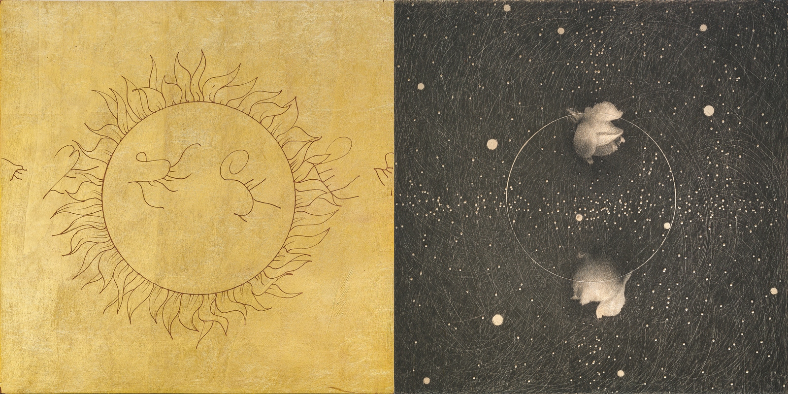 Il percorso espositivo comprende una trentina di lavori su tavola, realizzati prevalentemente a matita nera e foglia d’oro, che caratterizzano la produzione dell’artista dalla fine degli anni Novanta ad oggi. Numerosi gli inediti, datati 2022 e pubblicati per la prima volta nel catalogo corsiero editore che accompagna la mostra.