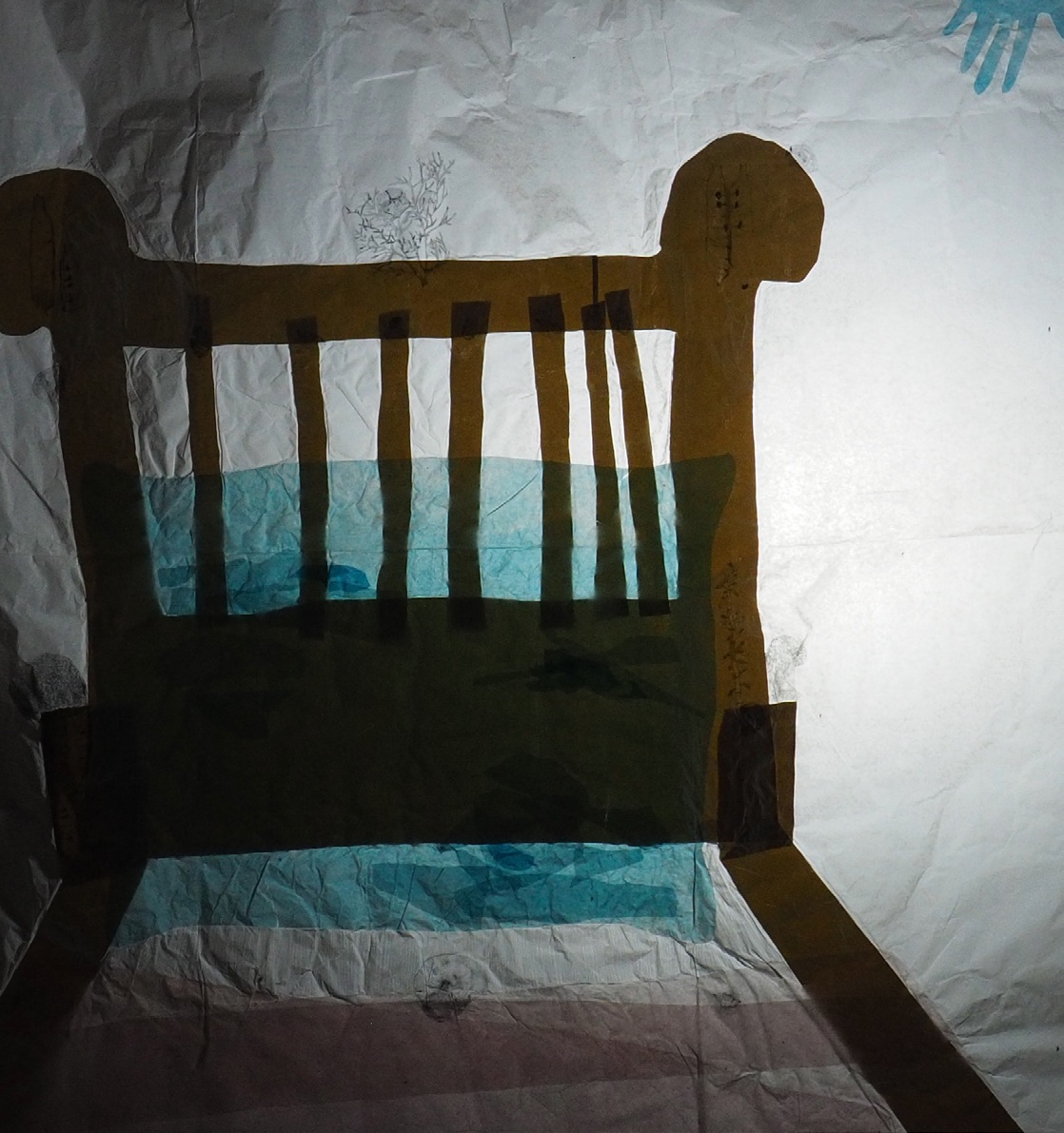 “Ho sognato una chioccia”, collage e grafite su carta velina, 105x130 cm