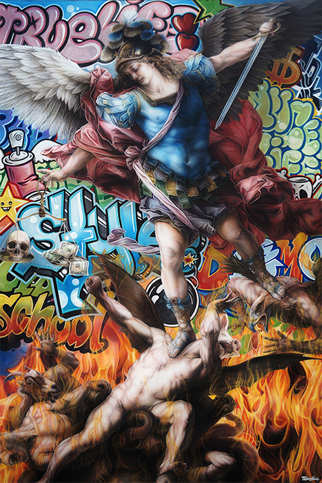 "Over the Wall” non si limita a esplorare i confini fisici e metaforici, ma diventa una riflessione profonda sulle barriere artistiche, culturali e sociali che l'artista ha sfidato nel corso della sua carriera. Il titolo stesso suggerisce un invito a oltrepassare le limitazioni imposte dalla tradizione, superando i confini tra le varie forme di arte, dalla street art alla pittura contemporanea.