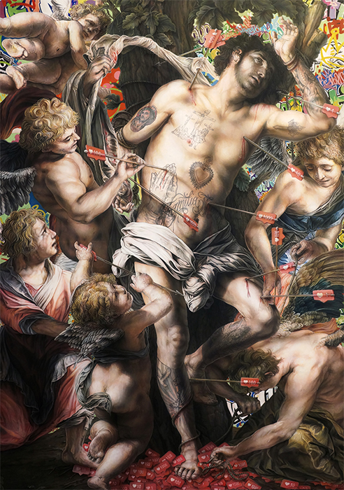 In questa mostra, Unia rielabora e ridefinisce le figure iconiche che popolano il nostro immaginario collettivo: da quelle legate all'arte storica, come i grandi maestri del passato, fino a quelle più contemporanee, che emergono dalla cultura visiva e dai media di massa. Le sue opere mostrano personaggi che sono diventati simboli, ma non si limitano a riproporre queste figure in chiave celebrativa. Al contrario, l'artista mette in luce le contraddizioni e le fragilità di queste immagini, sottolineando la decadenza dei miti del passato e mettendo in discussione il loro significato nel mondo di oggi.