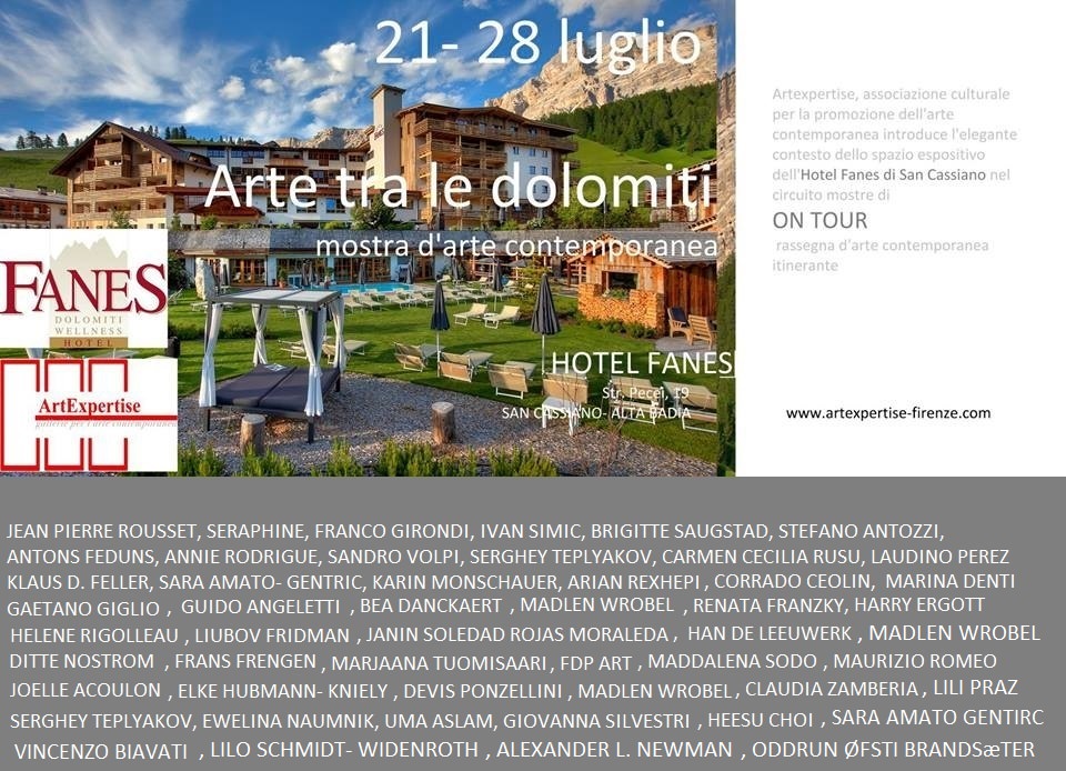 Artexpertise presenta On Tour Dolomiti, rassegna d’arte itinerante che fa tappa nell’elegante contesto dell’Hotel Fanes, presso San Cassiano- Alta Badia. Una mostra d’arte contemporanea suggestiva grazie alla location d’eccellenza ed alle opere di un eterogeneo gruppo di artisti internazionali.