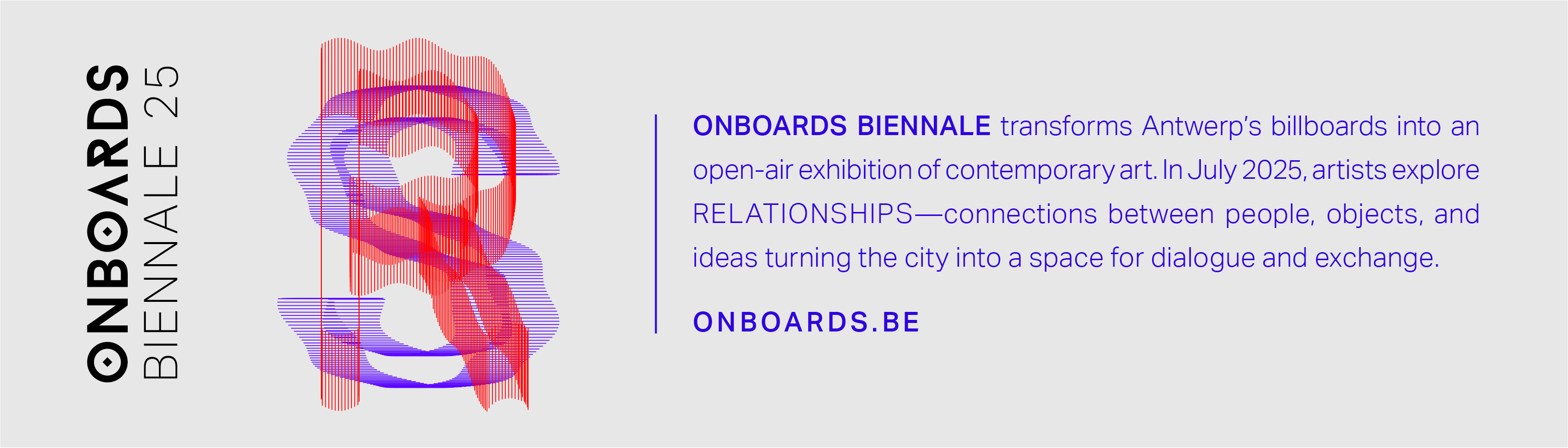 Onboards Biennale transforms Antwerp’s urban landscape into an unfolding exhibition, reimagining billboards as sites of collective artistic encounter.