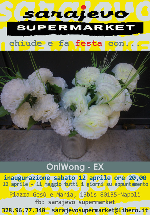“Partecipare ad una installazione di OniWong è sempre un'esperienza catartica. Si è presi da quella sensazione che avvolge trovandosi al cospetto della rappresentazione d'una interiorità che evolve verso stadi di coscienza in ordine progressivo. E accade anche con EX, dove l'artista, equilibrando forme e cromatismi, unisce elementi urticanti con segni d'algida pacificazione. EX-allontanamento per tendere all'oltre. È riferito a quel tratto d'accumulo ordinato-disordinato d'esperienze che hanno formato la personalità fisico-emozionale individuale. Tratto che, per intenzione, vuole essere superato per tendere-tendersi verso prospettive coscienziali evolute. Il superamento è nello spazio sacrale, segnato dalla sepoltura, dove l'epitaffio, trascritto nella successione numerica di Fibonacci, sottende l'apertura a quell'oltre che, relazionato all'infinito, appare, superando stadi di coscienza raggiunti e cristallizzati.