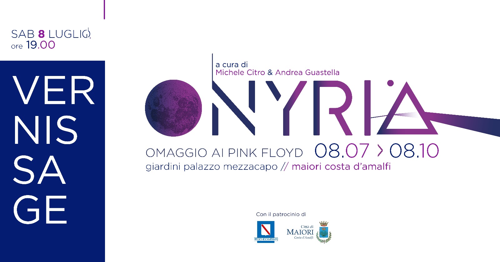 Dall’8 Luglio all’8 Ottobre 2023, l’androne dello storico Palazzo Mezzacapo di Maiori e i suoi giardini fungono da cornice per “ONYRIA 2. Omaggio ai Pink Floyd” a cura di Michele Citro e Andrea Guastella.