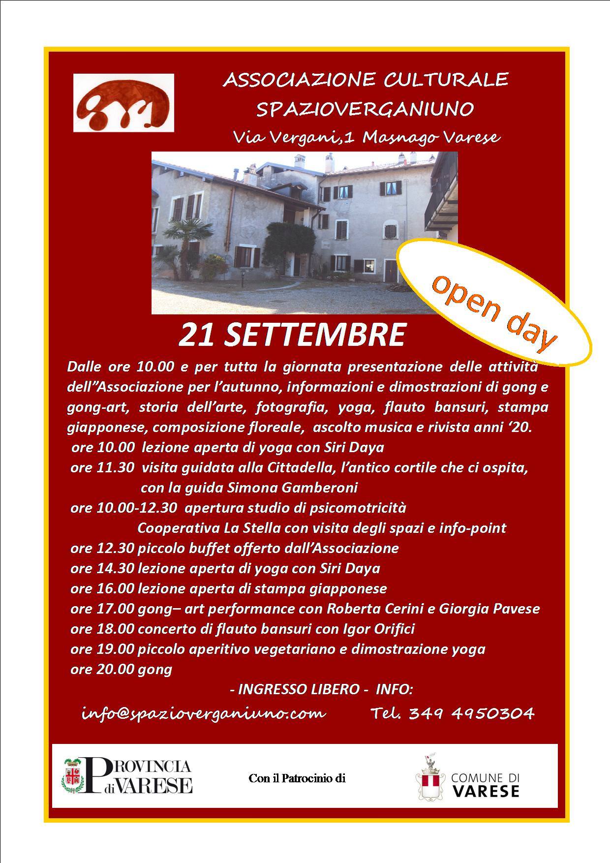 Sabato 21 Settembre Open Day allo Spazioverganiuno di Varese dalle ore 10 fino alle 21 attivita’, laboratori, musica, dimostrazioni e aperitivi per tutti.Con il Patrocinio del Comune e della Provincia di Varese.
