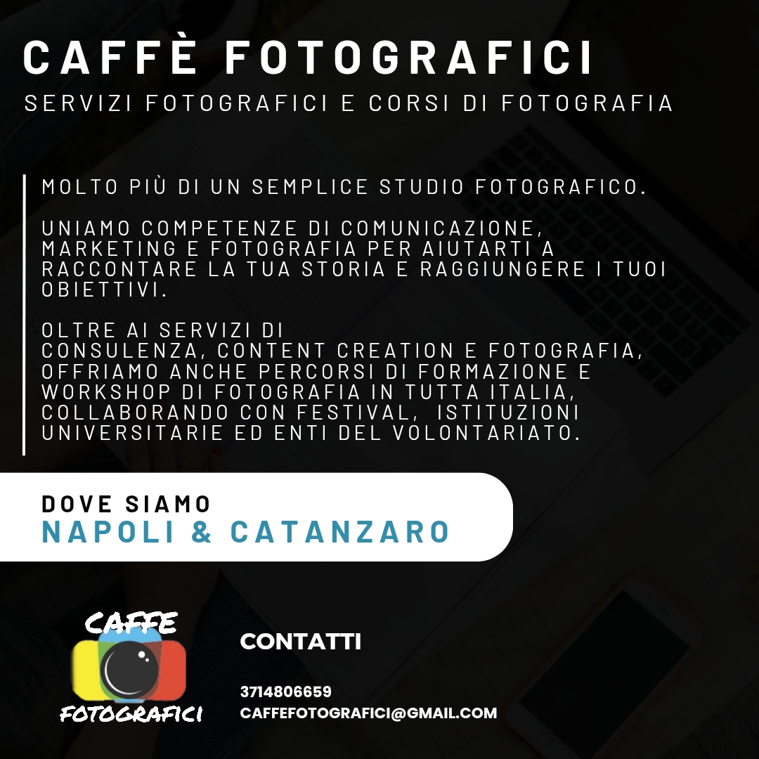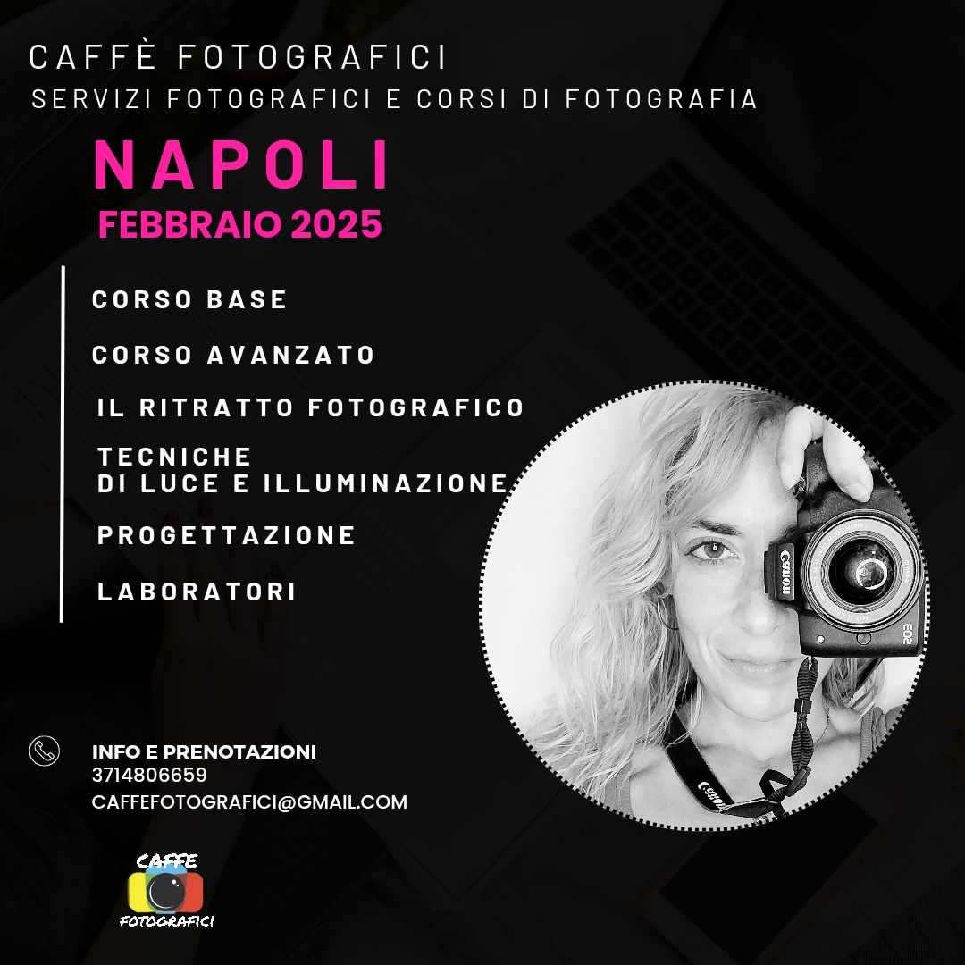 Ljdia Musso, fotografa professionista e fondatrice di Caffè Fotografici, vi invita all'Open Day di domenica 12 gennaio, dalle 10:30 alle 15:00, presso lo studio in Via Sanità 119 a Napoli.