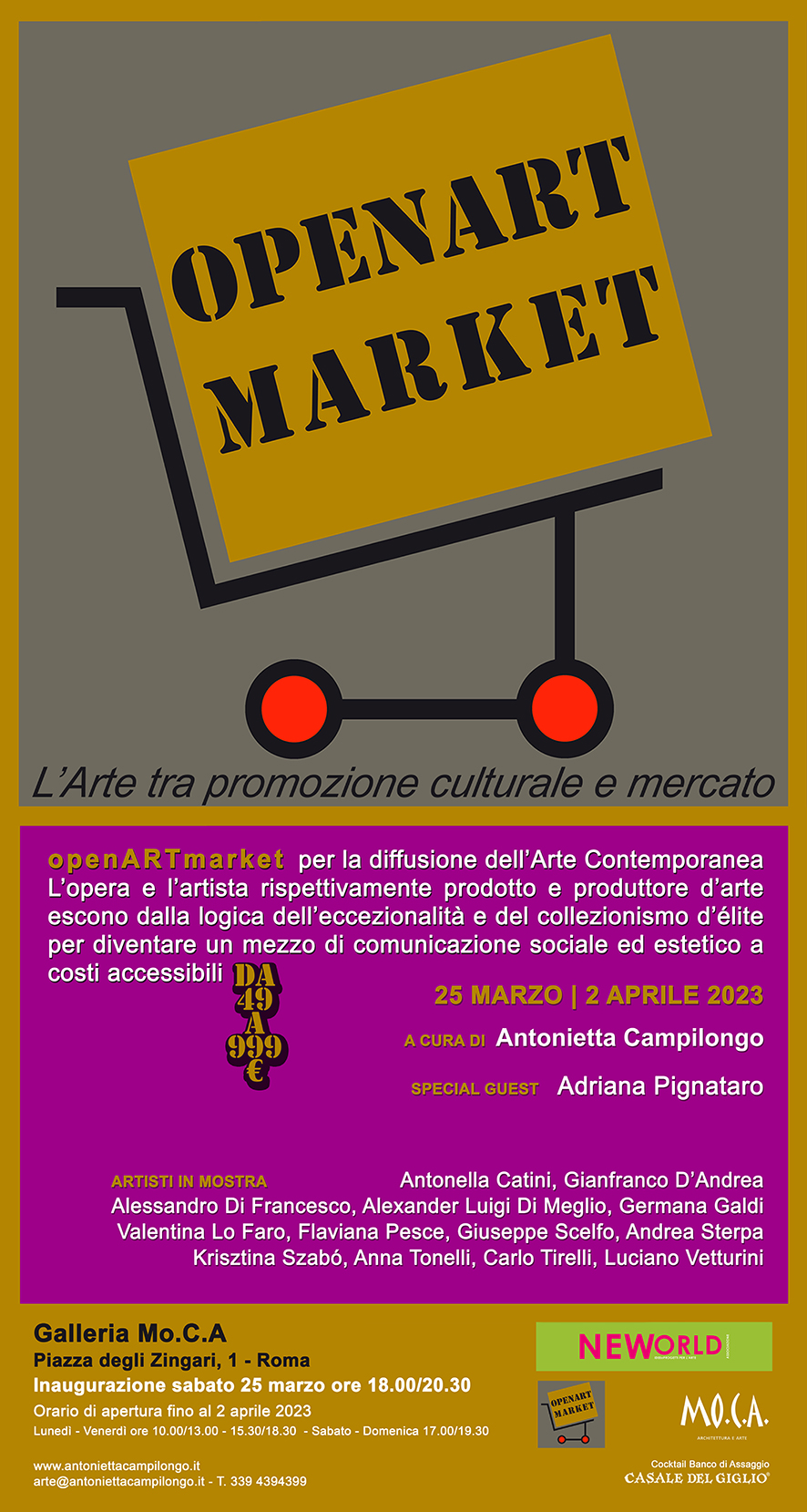 Si inaugura sabato 25 marzo 2023 alle ore 18.00 un nuovo appuntamento, il XXIX, di OpenARTmarket, progetto a cura di Antonietta Campilongo, fino al 2 aprile, presso la Galleria Mo.C.A. – Piazza degli Zingari, 1 - Roma