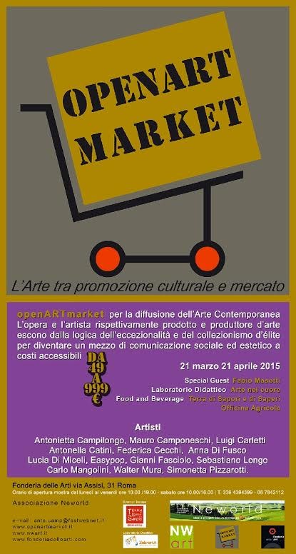 Si inaugura sabato 21 marzo 2015 un nuovo appuntamento, il dodicesimo, di OpenARTmarket, a cura di Antonietta Campilongo, fino al 21 aprile 2015 presso la Fonderia delle Arti, in via Assisi 31 a Roma.